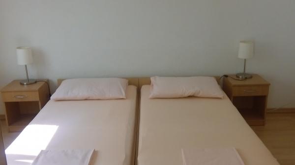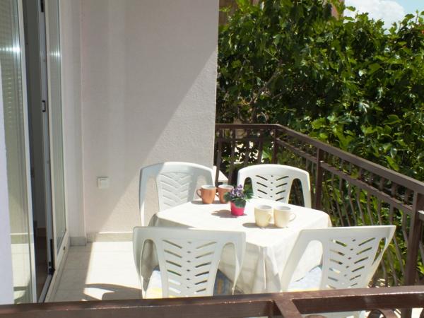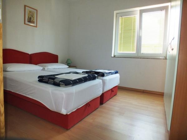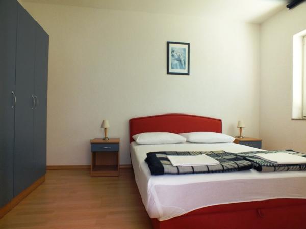 Iznajmljujemo dva apartmana od 52m2 za 4-6 osoba u mirnoj ulici. Apartmani se sastoje od dnevnog boravka sa kuhinjom, dvije spavaće sobe, kupaonice sa tušem i balkonom. Opremljeni sa TV/SAT, klima uređajem, neograničenim internetom i roštiljem.