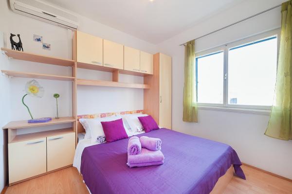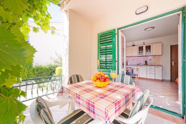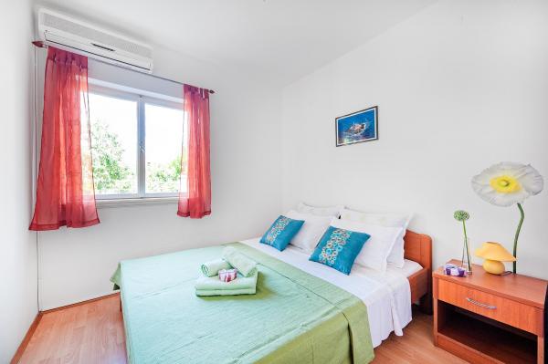 Velik i prostran apartman s dvije sobe i velikom terasom s prekrasnim pogledom na more. Dvorište s uređenim vrtom prilagođeno za djecu i igru, a na raspolaganju nam je bilo besplatno korištenje bicikla. Blizina mora, kafića i prodavaonice. Preporučam...