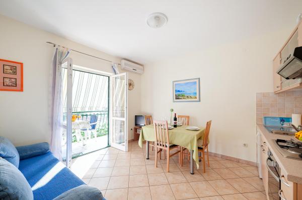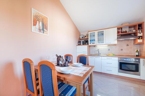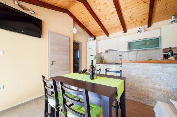 Apartman se nalazi na prvom katu s pogledom na more, uređen sa stilom i veoma čist. Sve je vrlo moderno i osjecate se udobno. Veliko i prostrano kupatilo, što je za mene veoma bitno. Domaćini su ljubazni, ljubazni i uvijek su tu što god da vam treba. Jako puno znaju o okolnim mjestima i izletištima. U hladnjaku nas je dočekala boca hladne vode i mineralne, a na odlasku prigodan poklon-suvenir. Velika pohvala na hortikulturnom uređenju dvorišta i prostoru za zajedničko druženje uz roštilj. Ovo je bio jedan od najljepših naših boravaka u ovom tipu objekta, odnosno u apartmanu.