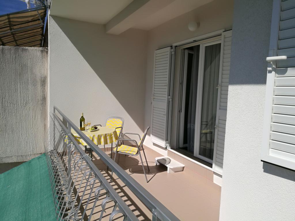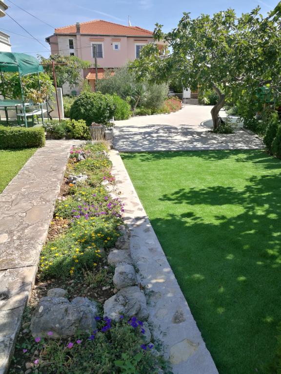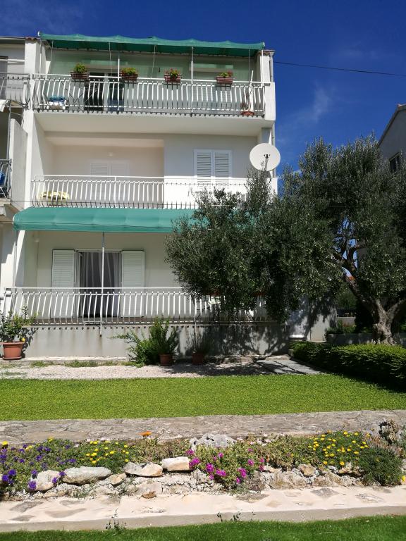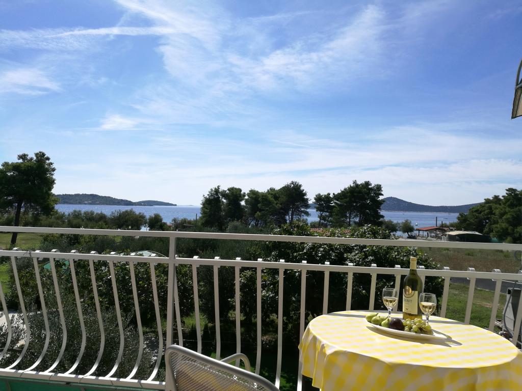 Kuća se nalazi u mirnom predjelu Vodica, prvi red do mora. Udaljena od centra 10 minuta hoda.