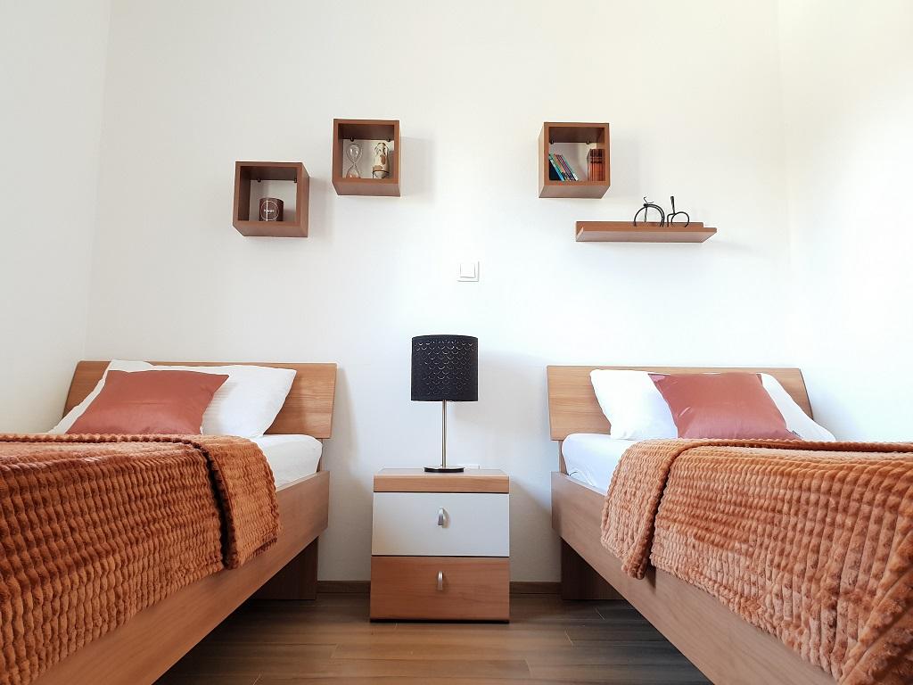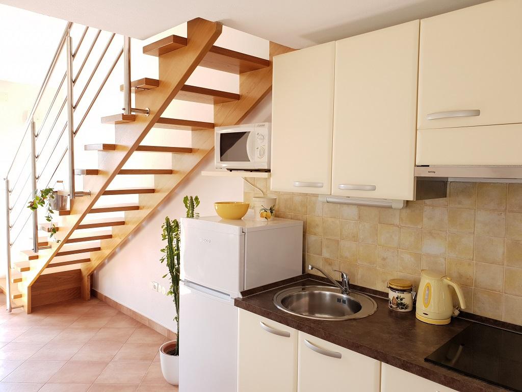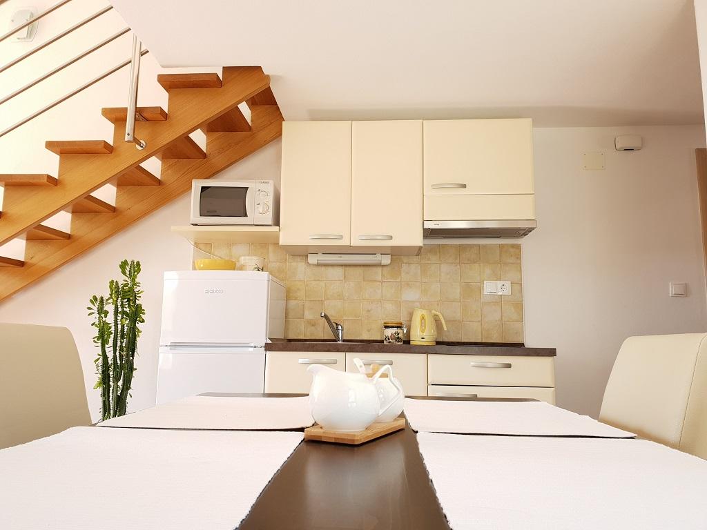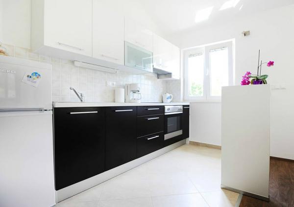 Pročitaj više Smještajne jediniceVrijeme dolaska: od 14:00 h, vrijeme odlaska: do 10:00 h. (Moguća ranija prijava i kasnija odjava, ovisno o zauzetosti.) Akontacija za rezervaciju iznosi 30% od ukupne cijene smještaja. Klima, bežični internet, parking, posteljina, ručnici, korištenje ljetne kuhinje s roštiljem, te bicikala, kao i završno čišćenje su uključeni u cijenu najma apartmana. Za duže boravke ili kod rezervacije oba apartmana istovremeno, odobravamo POPUST :)