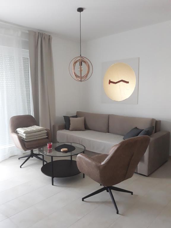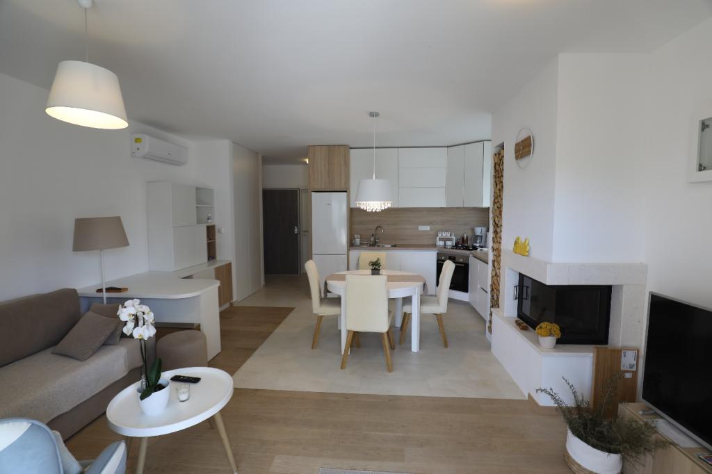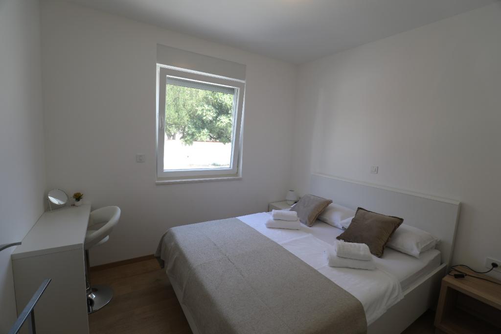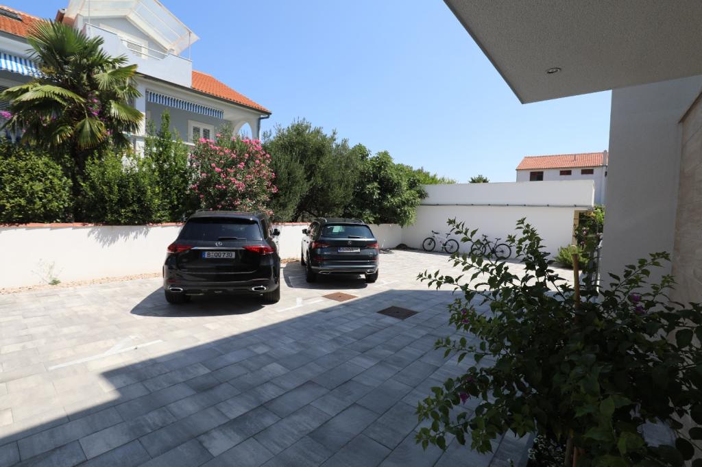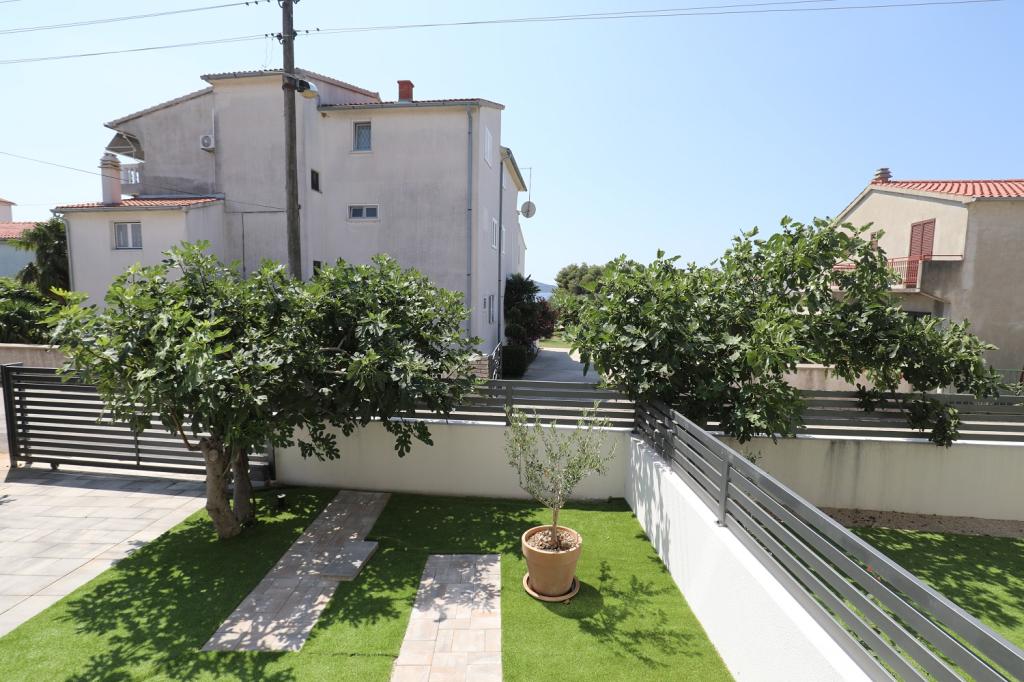 Dobrodošli u novouređene apartmane u mirnoj ulici nedaleko centra. Odmorite se u opuštajućoj atmosferi moderne udobnosti, na terasama koje gledaju prema moru. Apartmani (65 m2) su dobro opremljeni (Wi-fi, perilica suđa, perilica rublja, klimatizacija, mreža za komarce). Apartman na katu ima dvije spavaće sobe, kupaonicu, dnevnu sobu s kuhinjom i blagovaonom, te prostranu terasu. Apartman u prizemlju luksuzniji je, ima jednu spavaću sobu, a terasa ima izlaz na vlastito dvorište. Apartmani imaju osigurano parkiralište. Blizina plaža (100 m) šljunčanih ili pješčane Plave plaže (5 min hoda) dobar je izbor za obitelji i ili parove posebno one koji vole duge šetnje uz more. Uz pomoć domaćina jednostavno je organizirati izlete u nacionalne parkove županije, izlete po obližnjim otocima, najam luksuznog glisera, kajaka ili bicikla, a moguće je organizirati pješačke ture i drugo. U dvorištu ima lokalnog bilja, od lavande, cvijeća do smokava što upotpunjuje doživljaj Mediterana.