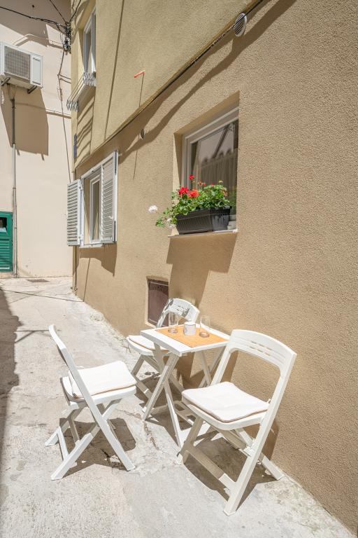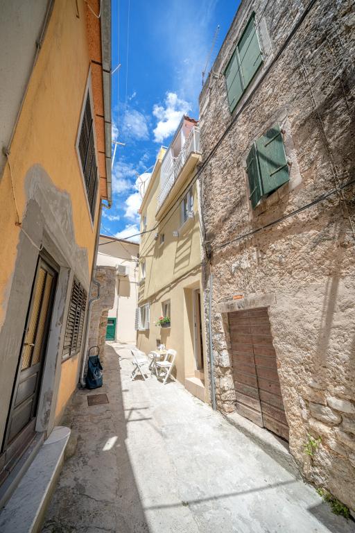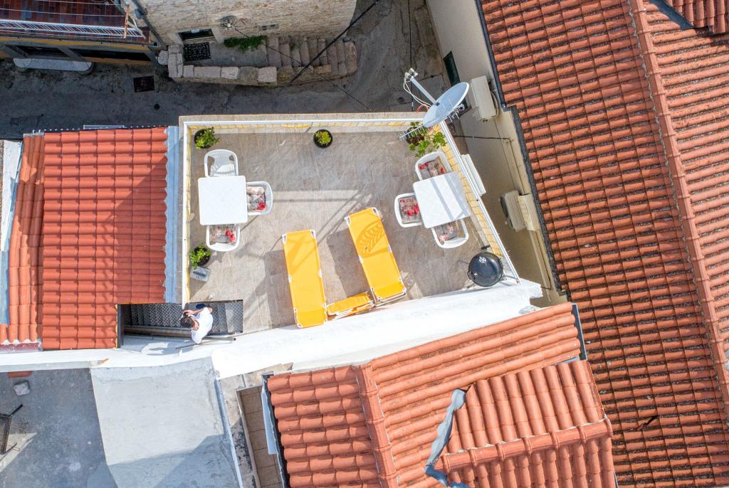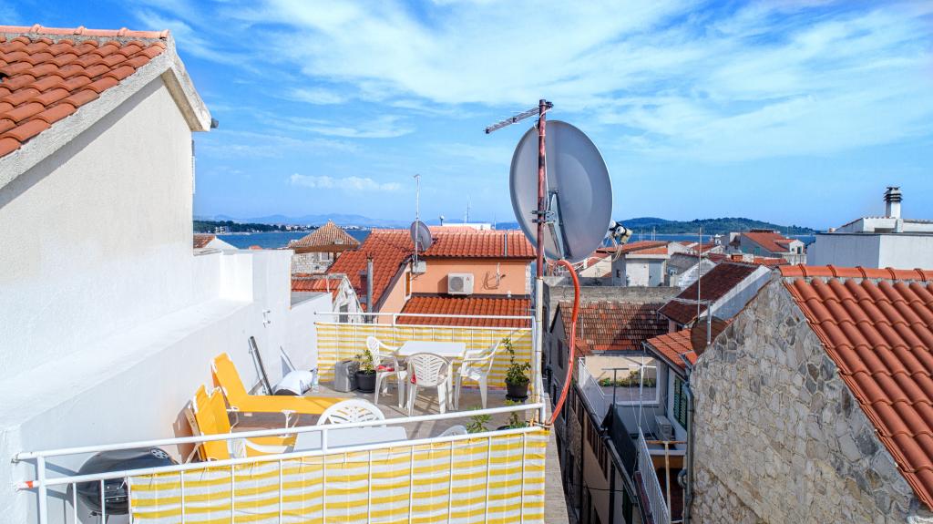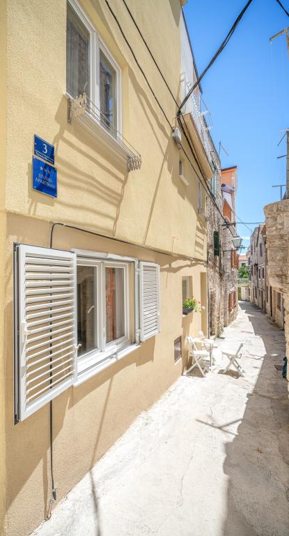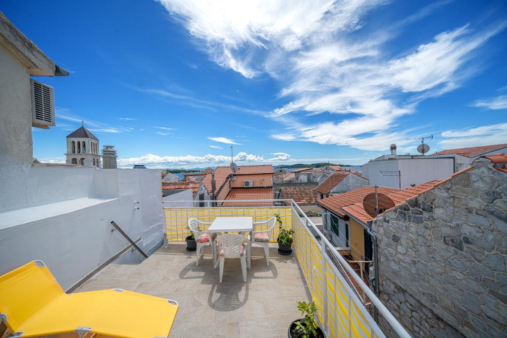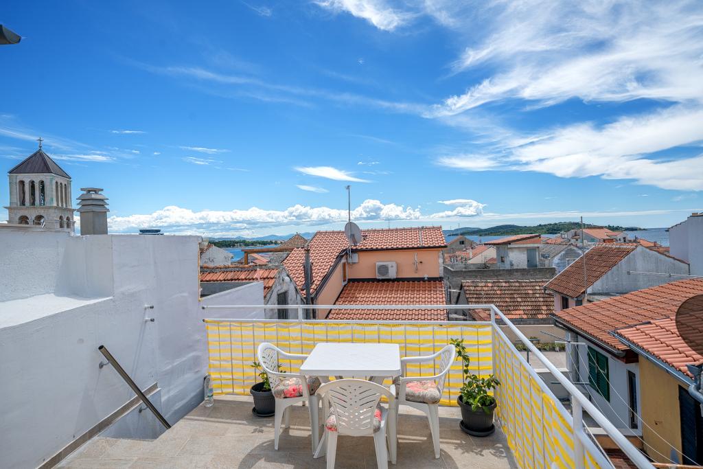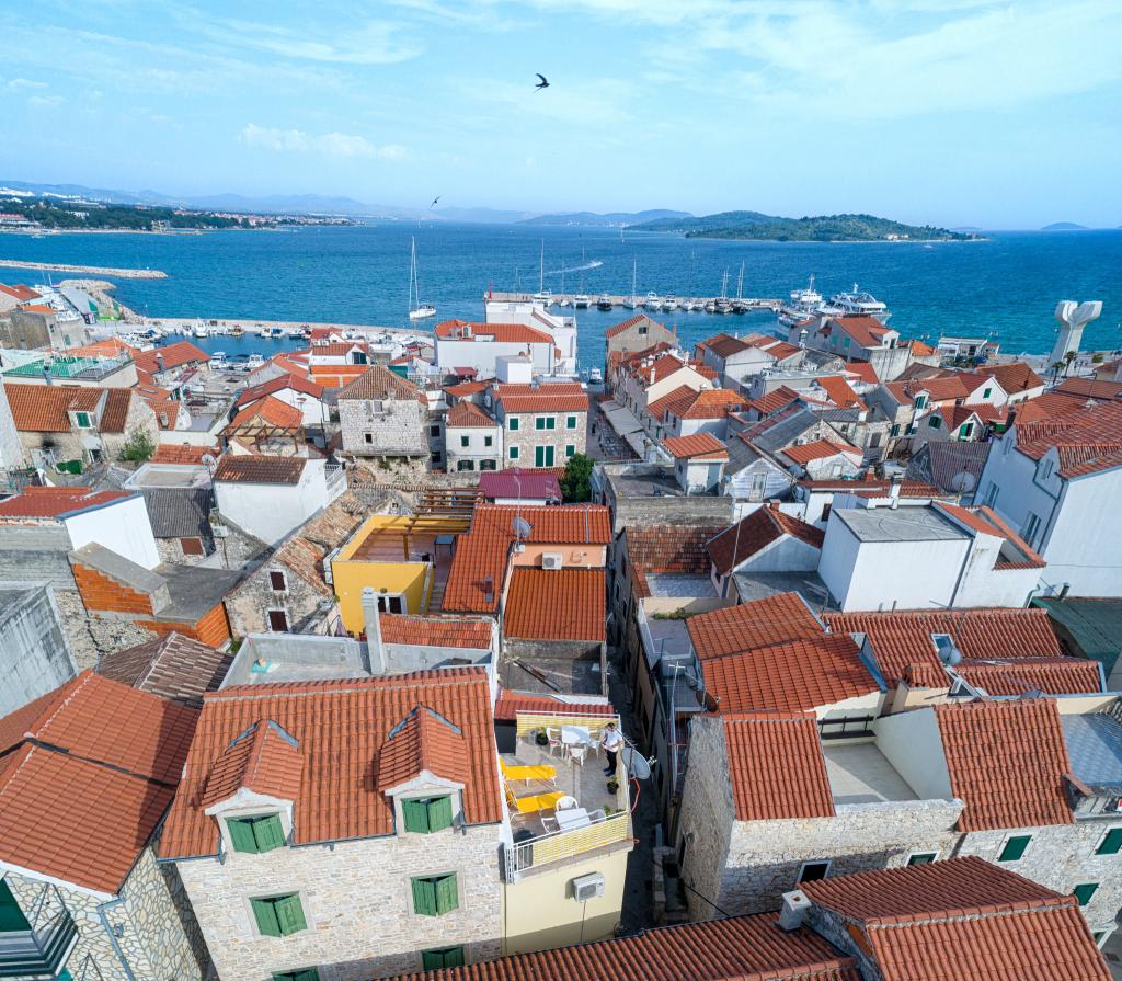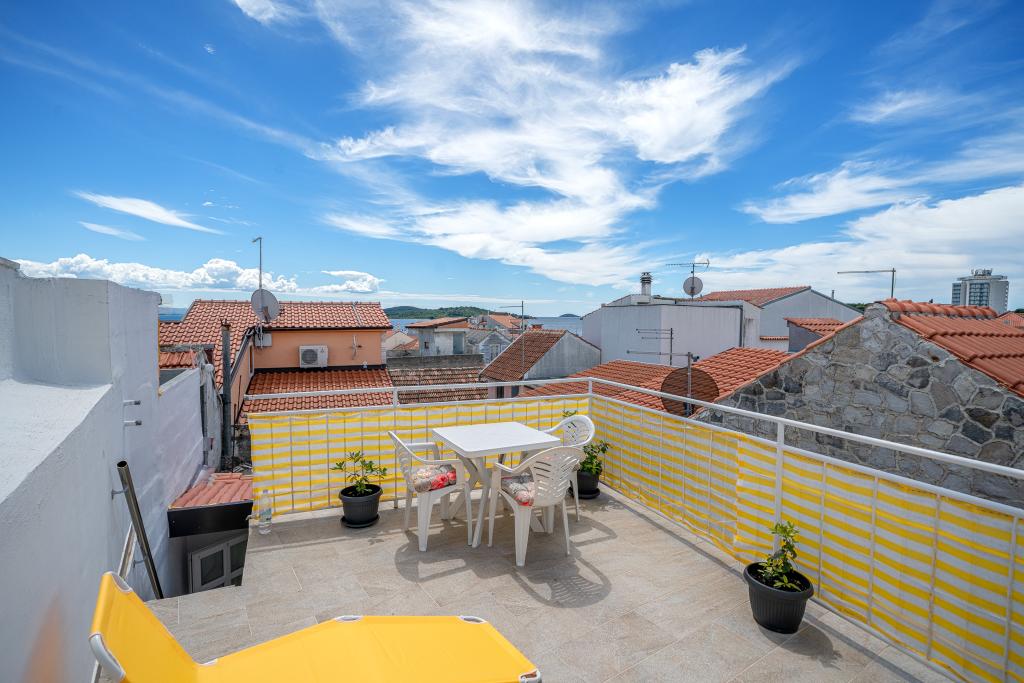 Naši apartmani se nalaze u mirnoj ulici u samom centru Vodica. Kuća je kompletno obnovljena i suvremeno opremljena 2015 godine. U kući se nalaze tri prostrana studio apartmana, u prizemlju, na prvom i drugom katu. Na vrhu kuće se nalazi terasa s koje se pruža pogled na cijele Vodice, more i otoke. Plaža se nalazi svega 5 minuta hoda od kuće, a na samo par koraka od kuće naći čete se okruženi restoranima, barovima i klubovima. Umajmiti možete bilo koji apartman posebno ili cijelu kuću. Rado ćemo vas upoznati sa svim sadržajima koji vam se nude u Vodicama.