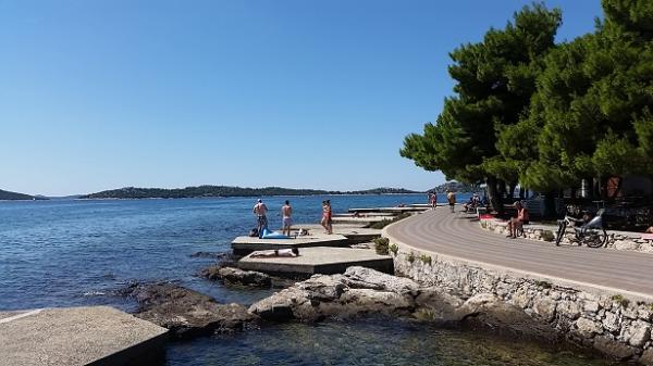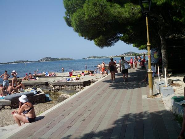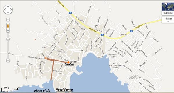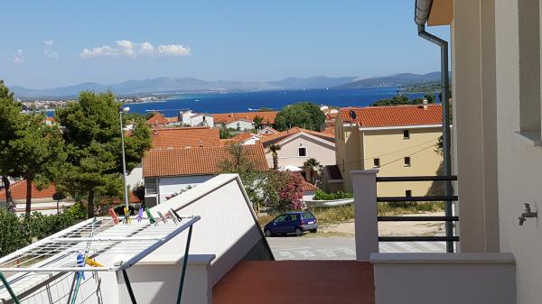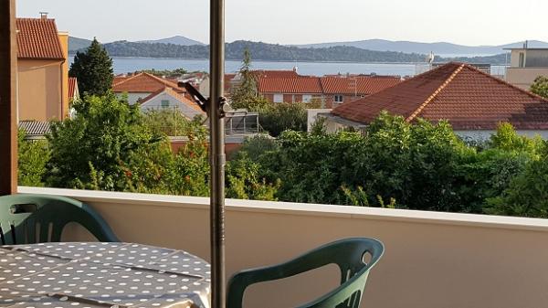 Kompletno opremljeni apartmani s terasom, pogledom na more i zasebnim ulazom. . Sastoje se od; dnevnog boravka sa rasklopnim kaučem (140/200 cm), kuhinje, sobe(krevet 160-200), kupatila i hodnika. Klimatizirani, perilica rublja (u odvojenom prostoru), električni roštilj, TV-Satelit i Wi-Fi internet. Parking osiguran, Trgovina prehrane u prizemlju kuće. Vrt ispred kuće. Apartmani se nalaze 300 m od Centra i 400 m od Plaže. Šljunčana Plava plaža nedaleko od hotela Punta a kojoj je dodjeljena plava zastava. Plaža u dužini jednog kilometra a staze su ravne kamene, betonirane, travnate ili prekrivene mozaik pločama. Tu se nalazi nekoliko tuševa i javni WC. Veliki dio plaže natkriva bor i tamaris, ima nekoliko caffe-bar usluga u prirodnoj hladovini. Vodice imaju bogatu turističku tradiciju i raznolikost ponude a u blizini su 2 nacionalna park