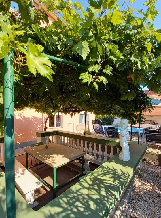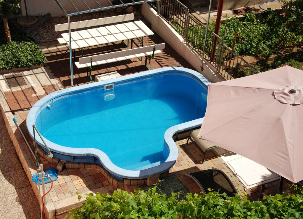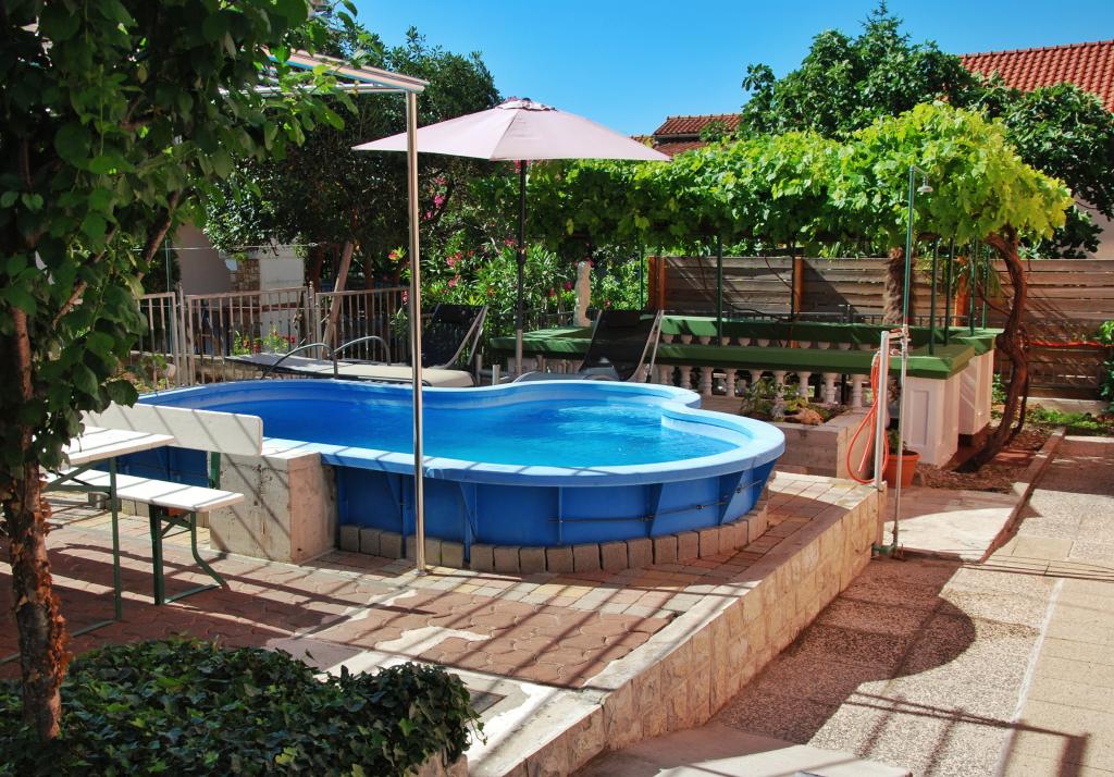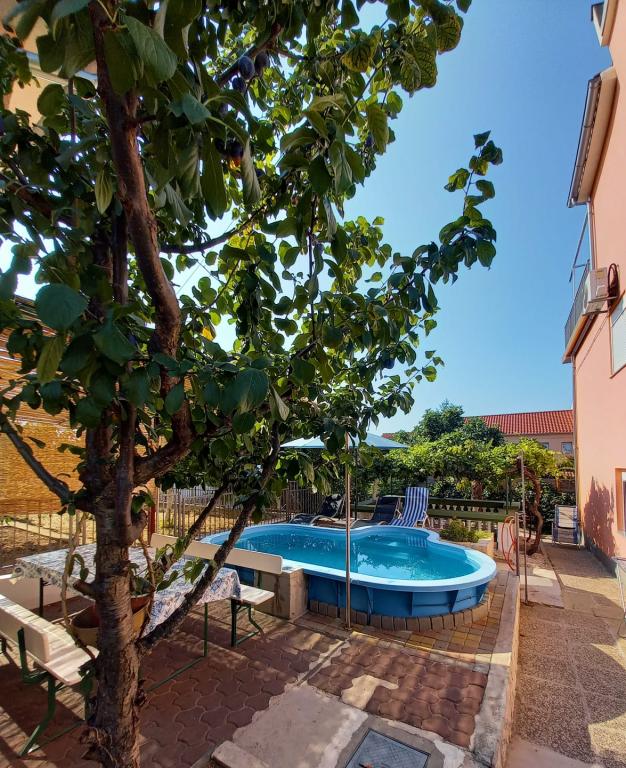 Kompletno renovirani apartmani u divnom kvartu,malo udaljen od centra,a u isto vrijeme jako blizu,jer vam treba 5-10 minuta hoda. Prvenstveno ciljamo na obitelji sa djecom,te za iste dajemo i popust. Iako ne živimo na istoj adresi,svakom gostu smo na raspolagaju 24 sata. Na korištenje svima su dostupna 2 bicikla,roštilj i naravno bazen,koji nije prevelik (4*2m),ali sasvim zadovovoljava potrebe,a naročito dijece. Također ,za svaki apartman imamo odvojenu 2 mjesta za odmor i sjedenje u hladu sa klupama.Na nakrivenom parkingu ima mjesta za 2 autombila,te i za treće koje se parkira pozadi. U našem objektu se nalaze 2 apartmana,jedan je na katu sa 3 sobe,dok je drugi u prizemlju sa 2 sobe i kaučem na rasklapanje gdje može boraviti još jedna osoba