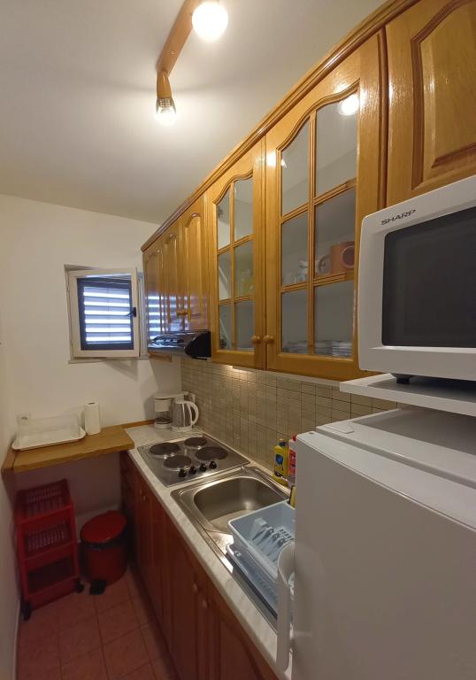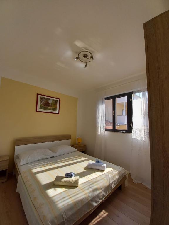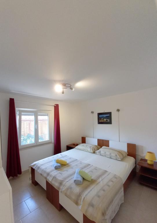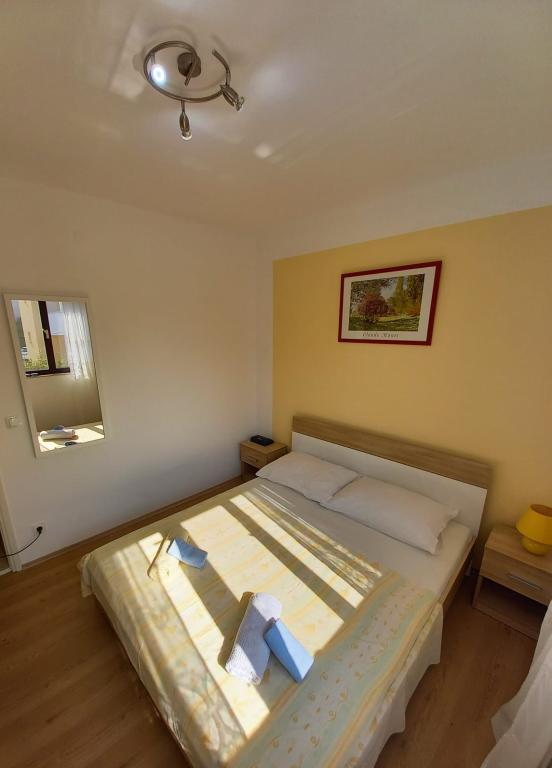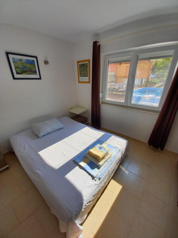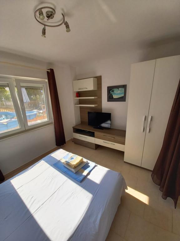 Turistička pristojba je uključena u cijenu. Šaljemo pismenu potvrdu rezervacije (voucher)Iako ne živimo na istoj adresi,svakom gostu smo na raspolagaju 24 sata. Na korištenje svima su dostupna 2 bicikla,roštilj i naravno bazen,koji nije prevelik (4*2m),ali sasvim zadovovoljava potrebe,a naročito dijece. Također ,za svaki apartman imamo odvojenu 2 mjesta za odmor i sjedenje u hladu sa klupama.Na nakrivenom parkingu ima mjesta za 2 autombila,te i za treće koje se parkira pozadi. Oba aprtmana su opremljena klima uređajima, tv/sat.