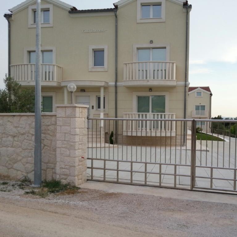 Luksuzna Vila Bachelors sadrži četiri velika apartmana, C1, C2, D1 i D2 Penthouse. Svaki od njih je velicine 140 m2 i dodatno juzna terasa od 35 m2. Sva cetiri apartmana imaja potpuno opremljenu kuhinju, blagovaonicu, spavace sobe za šest osoba, dnevni boravk sa televizorom, tri spavaće sobe, 3 klima uređaje velikog kapaciteta, 2 kupaonice jedna veca sa duplim tušem i umivaonikom. Druga kupaona je manja. Velike terase sa pogledom na grad, more, otoke, bazen i vrt. D2 Penthouse apartman se ističe sa spektakularnim pogledom. I ima jednu veliku kupaonu sa duplim tusem i umivaonikom. Privatni vanjski prostor s dva velika bazena. Apartmani C1 i C2 dijele jedan od ovih bazena i okolni vanjski prostor s tušem, WC-om, ležaljkama, gril kucom sa velikim stolom za 12 osoba. Apartmani D1 i D2 Penthouse dijele drugi bazen s okolnim vanjskim prostorom s tušem, WC-om, ležaljkama, kuhinjom i gril kucom.