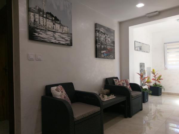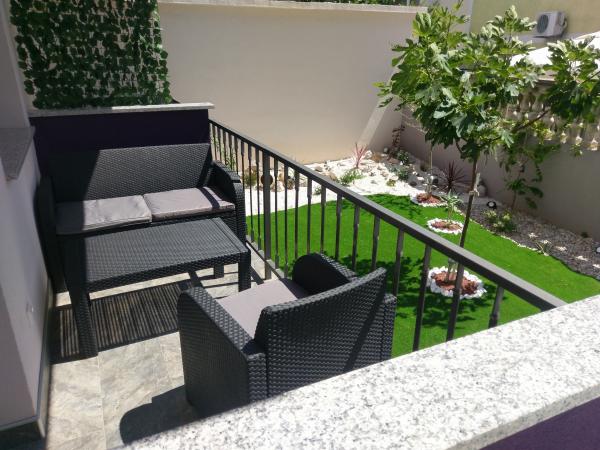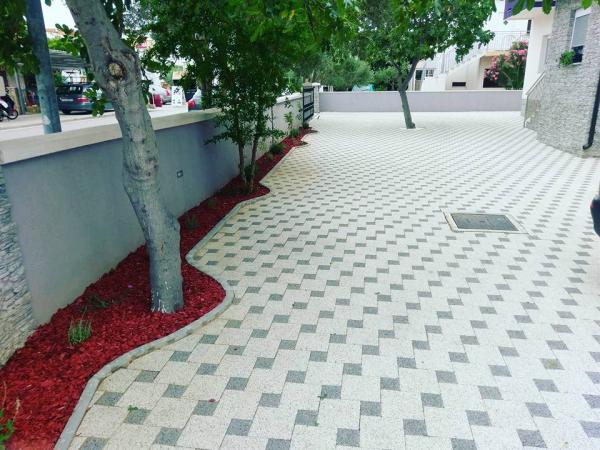 Kompletno i moderno uređeni apartmani u mirnom djelu Vodica, smješteni u blizini plaže. Kuća se nalazi 2 minute hoda do plaže. U svakom apartmanu osobni sef. U zatvorenom dvorištu objekta nalazi se parking za sve automobile. Uživate li u ribi, mesu, povrću sa roštilja u dvorištu možete se slobodno poslužiti