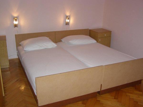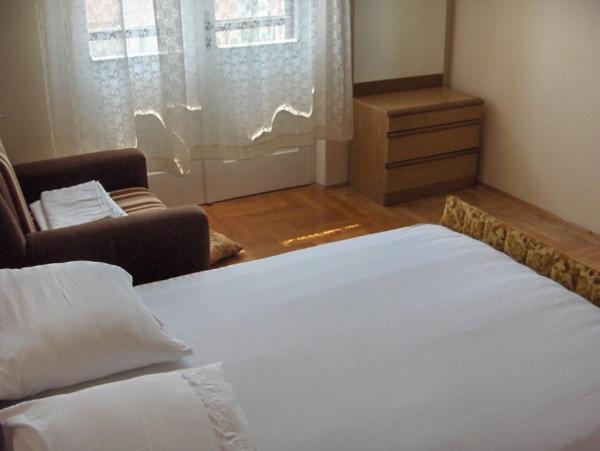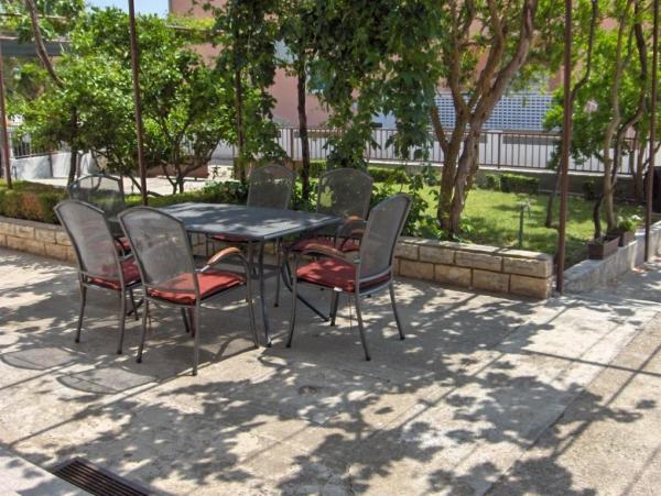 Veliki apartman sa četiri sobe, kuhinjom, dvije kupaone i velikom blagavaonom, veličine 110m2, te tri sobe sa kupaonom, lijepo uređene, ugodnog ambijenta u centru jednog od najpopularnijih turističkih mjesta na jadranskoj obali. Nalazimo se vrlo blizu, pješice tri do per minuta od, plave plaže, plaže obilježene plavom zastavicom kao znak iznimno čistog mora i simbola atraktivnosti plaže, te centra grada, a opet na vrlo mirnoj lokaciji, pogodnoj za odmor i opuštanje. Unutar objekta za sve goste je osiguran parking, u dvorištu se nalaze ugodnan prostor za sjedenje, te grill. Sve je podešeno da se odmorite i lijepo provedete.