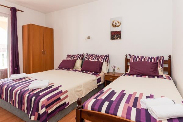 Trodnevni boravak je bio ugodan. Apartman i objekat su čisti, uredni. Apartman 4+2 je vrlo dobar za cijenu koju smo platili. Posjeduje dva balkona, tv, klimu, dvije odvojene sobe plus trpezarija sa kuhinjom i dnevnim boravkom spojeni u jednu prostoriju. Vlasnici su jako ljubazni. Parking je osiguran. Lokacija je 15 min od plaže, nije na brdu i slično. Ispred apartmana je solidan vrt sa roštiljem. Sve u svemu je za preporuku.