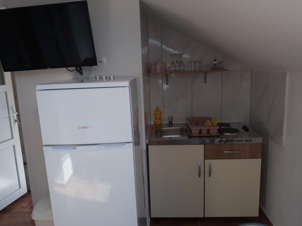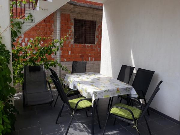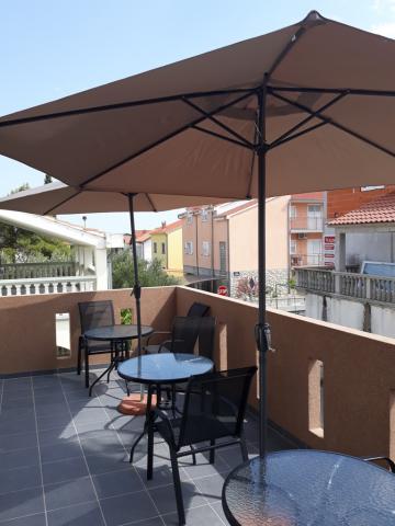 Raspolažemo sa novoizgrađenim apartmanima su na atraktivnoj lokaciji u Vodicama, u objektu se nalaze 3 Apartmana Studio od kojih je svaki suvremeno opremljen kuhinjom, kupatilom, bračnim ležajem, televizorom.... ima wifi i klima u apartmanima...kuhinje su opremljene svim što je potrebno za uporabu.... . ručnici i posteljina.... . svaki apartman ima osiguran parking pokraj objekta.... u apartmanima se nalazi i suncobran koji se može ponijeti na plažu.... Apartmani se nalaze na katu gdje se nalazi velika terasa sa suncobranima.... U prizemlju se nalazi apartman za 4 osobe koji ima veliku prekrasnu terasu, , , spavaću sobu dnevni boravak gdje se nalaze dva pomoćna ležaja, kuhinja koja je opremljena sa svim što je potrebno, kupaonice koja ima i perilicu rublja.... Apartmani su od plaže udaljeni 500 metara, trgovina 400 metara.... restorani 450 metara....