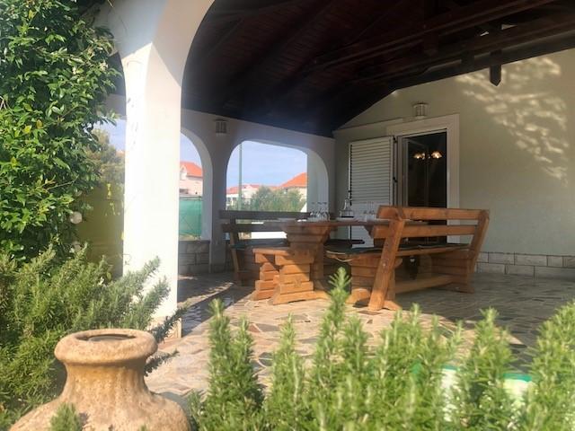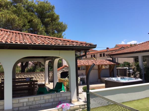 Cijela kuća samo za Vas! Raj za obitelj! Dobro došli u vilu Melosa! Komforna kuća za odmor u Vodicama s privatnim terenom za tenis. Kuća može primiti do 10 gostiju. Posjeduje 5 spavaćih soba, 3 kupaonice, kuhinju, dnevni boravak te prostranu terasu na kojoj se možete opuštati i uživati u roštiljanju i vanjskom Jacuzziju za 5 osoba. Kuća je klimatizirana. U sklopu objekta na raspolaganju su 3 parking mjesta, dva s natkrivenim garažnim prostorom. Cijeli posjed je ograđenom ogradom tako da možete biti sigurni da djeca neće izaći na cestu i mogu se bezbrižno igrati na prostranom dvorištu.