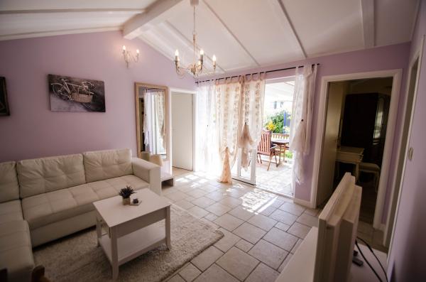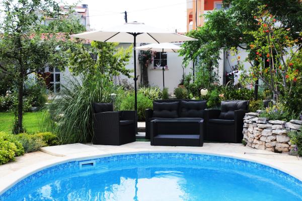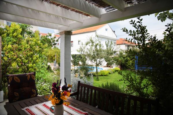 Rustikalno uređena mala vila u mirnom djelu Vodica, u neposrednoj blizini stare jezgre, te isključuje korištenje automobila za kojeg imate osiguran parking. Vila se nalazi u prostranom i bujnom vrtu sa bazenom i dječjim parkom. Svi potrebiti sadržaji nalaze se na 10-tak minuta hoda od objekta.