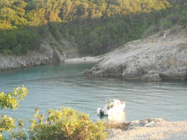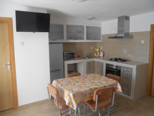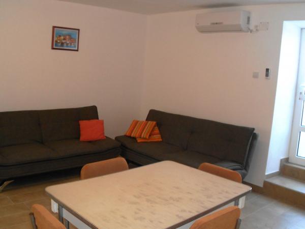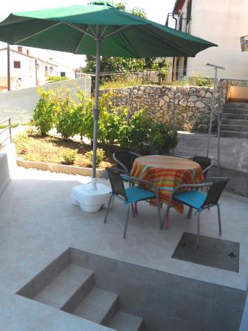 Novouređeni apartman nalazi se u mirnom dijelu Vrbnika, koji je od centra, trgovine i restorana udaljen svega stotinjak metara, a od luke s plažom 250 m. Gradska plaža udaljena je 10 minuta hoda, a u krugu od 2-6 km nalazi se nekoliko većih šljunčanih i jedna pješčana plaža. Apartman je smješten u prizemlju obiteljske kuće s posebnim ulazom i ograđenim dvorištem s prednje strane kuće te izlazom sa stražnje strane na veliku terasu s pogledom na more i stari grad. Ima jednu zasebnu spavaću sobu s bračnim krevetom te veliki odvojeni prostor kuhinje s dnevnim boravkom u kojem su smještena dva dodatna ležaja. Na samom ulazu je odvojeno predsoblje s kaučom koji može poslužiti kao pomoćni ležaj, a dodatne dvije zasebne prostorije čine izba i kupaonica s WC-om i tuš kabinom. U konačnici to je prostor koji će vam pružiti opuštajući i ugodan odmor.
