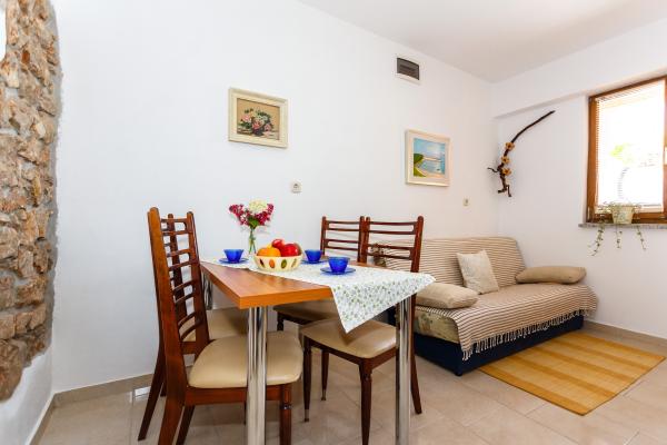 Apartmani se nalaze u mirnom mjestu Risika pored Vrbnika na otoku Krku. Podno mjesta nalazi se predivna pješčana plaža Sv. Marak idealna za obitelji sa djecom, obogaćena ugostiteljskim sadržajima, udaljena 1, 5 km od apartmana. U blizini su i manje šljunčane uvale, također dostupne automobilom ili pješice. Apartmani Anica smješteni su u prizemlju obiteljske kuće. Svaki apartman ima vlastitu terasu sa vrtom i puno zelenila, parkiralištem u dvorištu. Svaki od apartmana ima jednu dvokrevetnu spavaću sobu, dnevni boravak sa blagovaonom, kauč na razvlačenje (pogodan za jednu odraslu osobu ili dvoje djece), opremljenu kuhinju te kupaonicu.