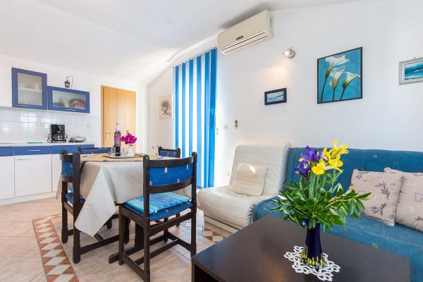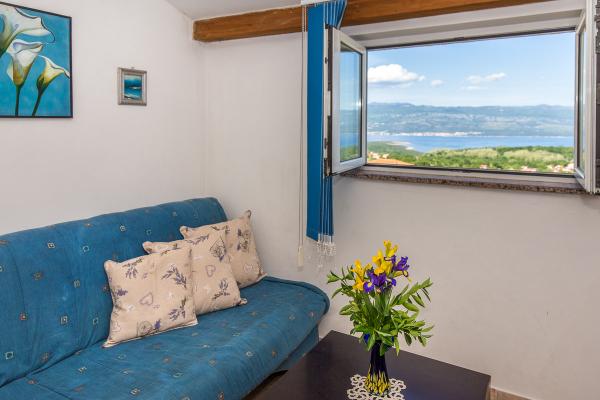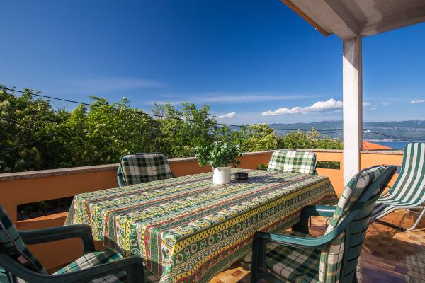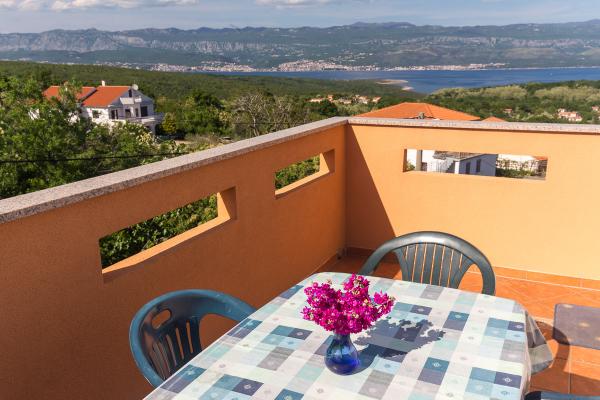 Ugodno opremljeni apartmani sa lijepim pogledima na more, u mirnom mjestu Risika pored Vrbnika na otoku Krku. Blizina dućana(100m) te 5-minutna vožnja do lijepe pješčane plaže.