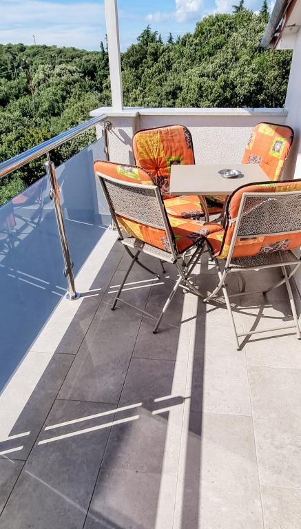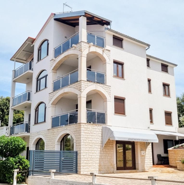 Apartmani se nalaze u obiteljskoj kući udaljenoj 400 m od mora te 10 minuta hoda do centra grada. Apartmani se nalaze u mirnom predjelu grada te svojim gostima omogućavaju opuštanje u šumovitoj okućnici uz koju se nalazi sjenica. Parking je privatan. Cijene svih apartmana su po dogovoru i okvirne ovisno o periodu i broju ljudi.