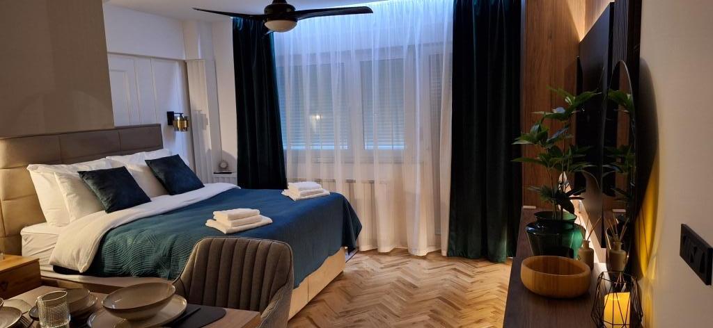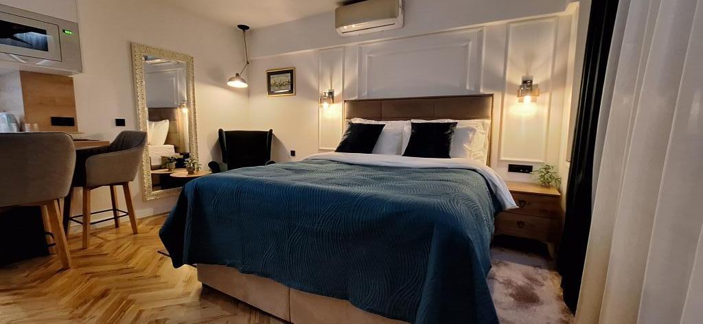 Novouređeni studio apartman s četiri zvjezdice nalazi se u samom centru grada, u stambenoj zgradi na šestom katu. Zgrada posjeduje dva lifta, a apartman ima površinu od 29m2.Apartman je moderno uređen i potpuno opremljen za ugodan boravak.S terase se pruža prekrasan pogled na Dunav i šetnicu,što stvara poseban ugođaj i mir,iako ste svega nekoliko minuta udaljeni od užurbanog centra.U neposrednoj blizini nalaze se dvorac Eltz,Gradski muzej,šetnica uz Dunav te brojni sadržaji poput trgovina,restorana,kafića i teretane-sve dostupno na pet min. hoda od apartmana.Gostima su na raspolaganju besplatan internet,ISKON TV te parking ispred zgrade.Lokacija je mirna i izdvojena od gradske buke, a istovremeno omogućuje brz pristup svim važnim sadržajima. Apartman je idealan izbor za parove,solo putnike ili poslovne goste koji traže udobnost,praktičnost i prekrasan pogled na Dunav. Adresa: DUNAVSKA 5, 32000 VUKOVAR Tel: 00385 98 162 9229