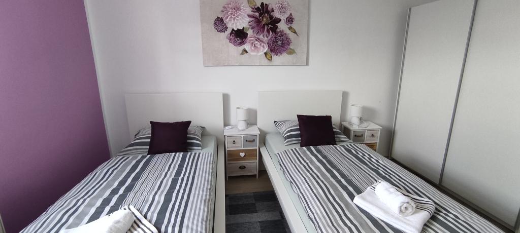 Kompletno i suvremeno opremljeni apartmani u mirnom dijelu grada. Objekt se nalazi 30 minuta hoda do centra , 10 minuta hoda do park šume Adica. Dvorište je u potpunosti ograđeno , dostupno je besplatno parkiralište za nekoliko automobila unutar dvorišta a također i ispred kuće.
