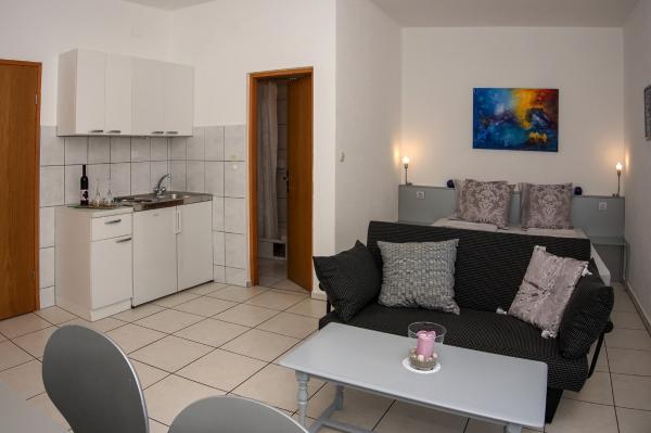 Odlične apartmane.. jako čiste i opremljene. Na 2 min od plaže u mirno okruženje. Sve pohvale za vlasnici, veoma ljubezni i ugodni, pravi domaćini. Imali smo problem s autom, pozvali njihove prijatelje da nam pomognu, čak dali nam bicikle da prošetamo, jednostavno prezadovoljni.