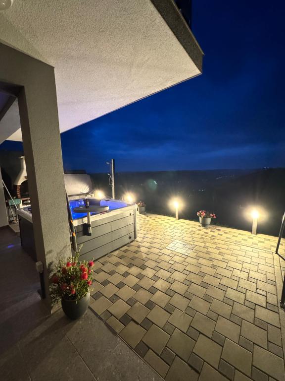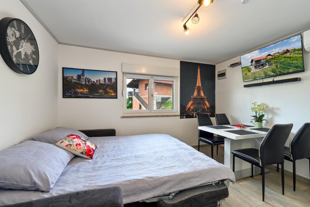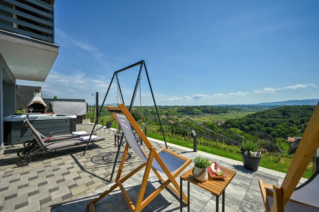 NOVOOTVORENO Kuća za odmor View and Wine nalazi se u Velikom Trgovišću, u Krapinsko zagorskoj županiji, udaljena 3 km od Termi Tuhelj. Na raspolaganju su privatno parkiralište, besplatan WiFi, 2 klima uređaja, 1-2 + 2 ležaja, 2 TV-a ravnog ekrana, blagavaona, potpuno opremljena kuhinja s hladnjakom i aparatom za pripremu kave, popločeni dio dvorišta, dvije ljuljačke. Dostupni su ručnici i posteljina. Ova kuća za odmor obuhvaća bazen/jacuzzi, saunu i kutak za djecu s društvenim igrama i raznim priborom. U okviru kuće za odmor na raspolaganju su dvije terase s prekrasnim pogledom na vinograde, prirodu i krajolik. Dostupna je potpuna oprema za roštilj a u okolici objekta gosti mogu uživati u pješačenju, raznim popustima na ulaznice za Terme Tuhelj, muzeje. Udaljenost od Zagreba je 35 km. Dođite nam, priuštite si odmor u prirodi kakav zaslužujete!