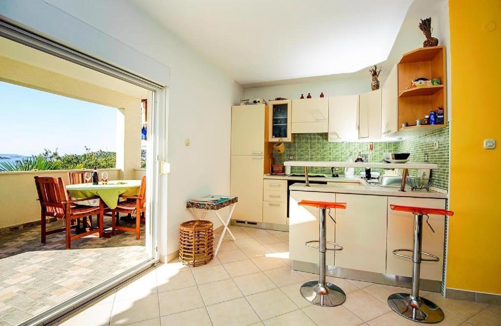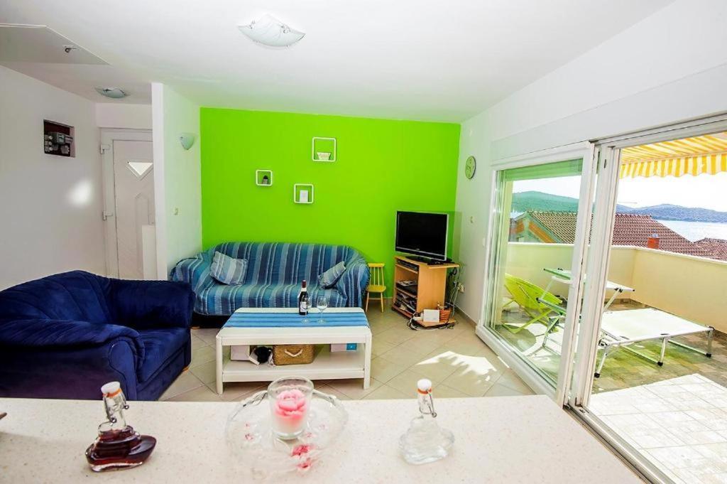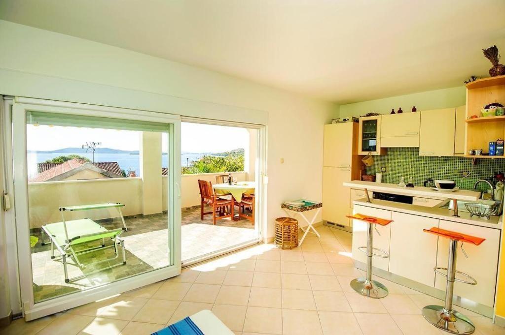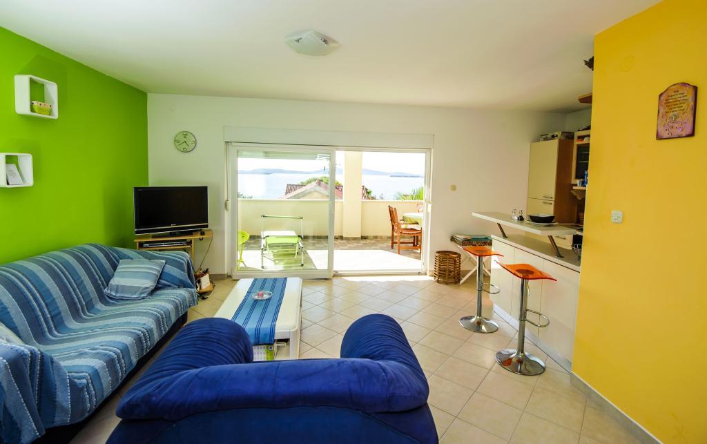 Apartaman se nalazi na prvom katu kuće, a kako je kuća na brijegu korisnicima pruža predivan pogled na more i uvalu. S terase se može vidjeti i otok Krapanj, najniži otok u Evropi. Kuća je smještena u mirnoj ulici pa ukoliko ste željeni pravog odmora, smještaj je idealan. Ukoliko ipak poželite obilaziti restorane, lounge barove i sl. Žaborić vam nudi pregršt restorana i zabave to tik uz more. Do samog centra sela možete ići pješke (20 min) ili autom (3 minute). Veliki trgovački centar Dalmare nalazi se na putu prema Šibeniku koji je udaljen 10 km. Žaborić je idealan ukoliko želite posjetiti i okolna gradove poput Primoštena, Vodica, Splita ili Zadra, ali isto tako preporučamo posjetiti Nacionlani park Krka samo 20 km udaljen. Puno više detalja i pomoći oko svega nude vam domaćini.