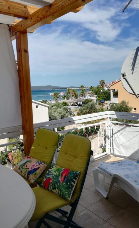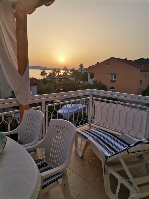Apartman je smješten u mirnom dijelu mjesta Žaborić. Nalazi se u visokom podkrovlju obiteljske kuće, drugi red do mora, par minuta hoda do glavne plaže. . Apartman je kompletno opremljen i klimatiziran. Sastoji se od dvije spavaće sobe, kupaonice, dnevnog boravka s kuhinjom i, blagovaonicom. Ima veliku terasu(20m2) s prekrasnim pogledom na more, zalazak sunca i obližnje otoke. Gostima je na raspolaganju parking, vez za manju brodicu, vanjski roštilj, tuš i WIFi internet.
