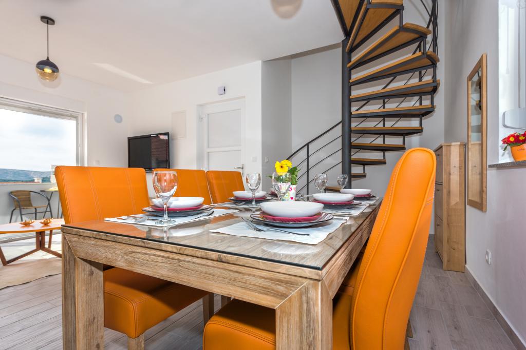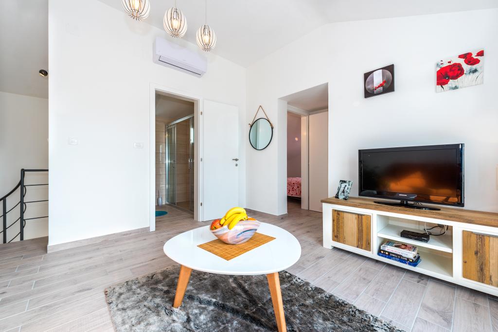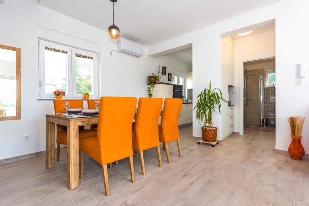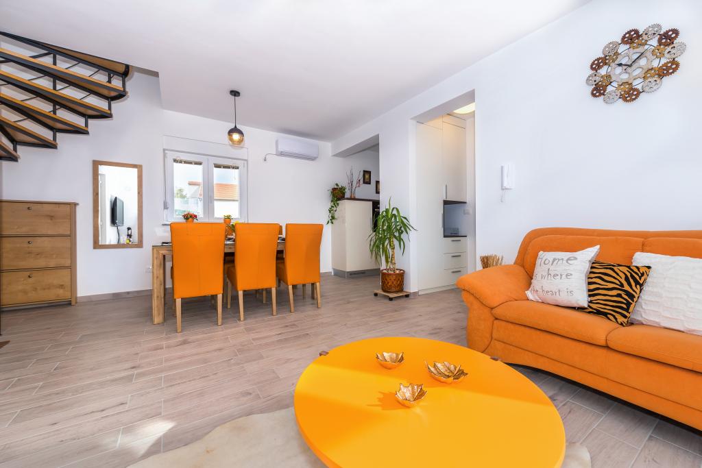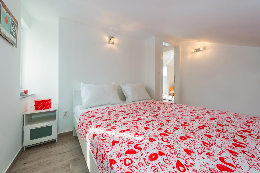 Apartment Marita nalazi se u mirnom predjelu Žaborića naziva Crveni brig, udaljen je oko par minuta od mora. Nalazi se u maloj zgradi na prvom katu. U sklopu apartmana nalaze se dvije besplatne garaže. Površina apartmana je oko 100 m2, prostire se na dvije etaže povezane unutarnjim skalama .Na prvoj etaži nalazi se moderno opremljena kuhinja sa svim uređajima, kupaonica ,dnevni boravak, balkon i spavaća soba s bračnim krevetom. Na gornjoj etaži nalazu se dvije sobe jedna s dva kreveta od osobe i druga s bračnim krevetom, kupaonica ,dnevni boravak i balkon s pogledom na more. U apartmanu su perilica za suđe i perilica za rublje te dva klima uređaja. Jedna od garaža je povezana s unutarnjim stepeništem i ulazom u zgradu. U blizini se nalaze dva restorana, najam brodova i jet ski, zabavni park na vodi. U blizini je i nacionalni park Krka udaljen oko 20 km brzom cestom.