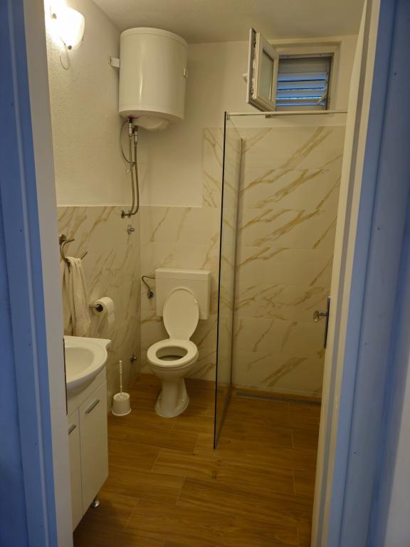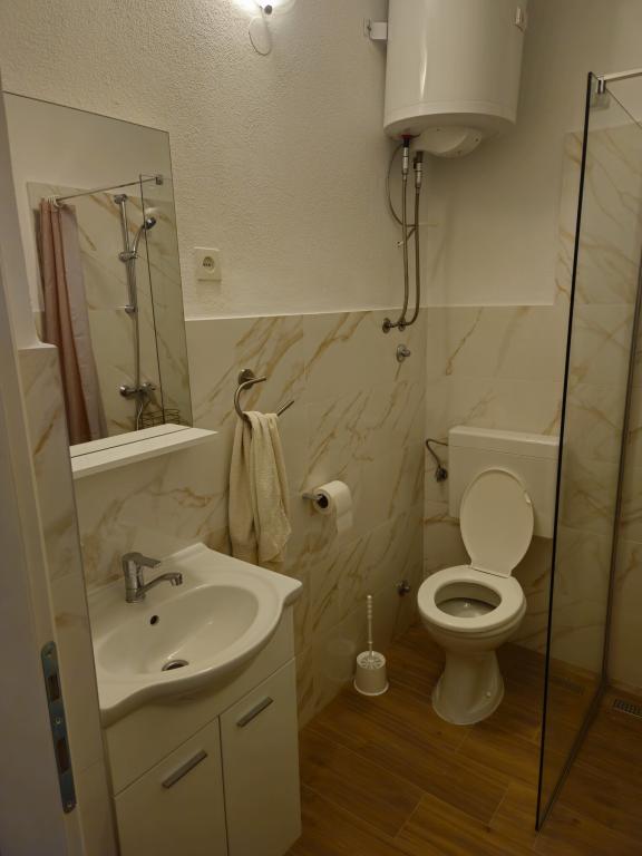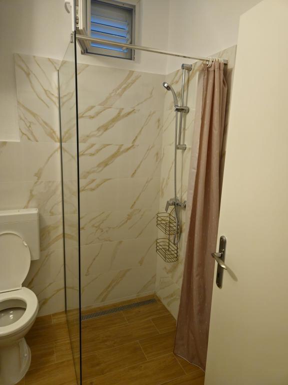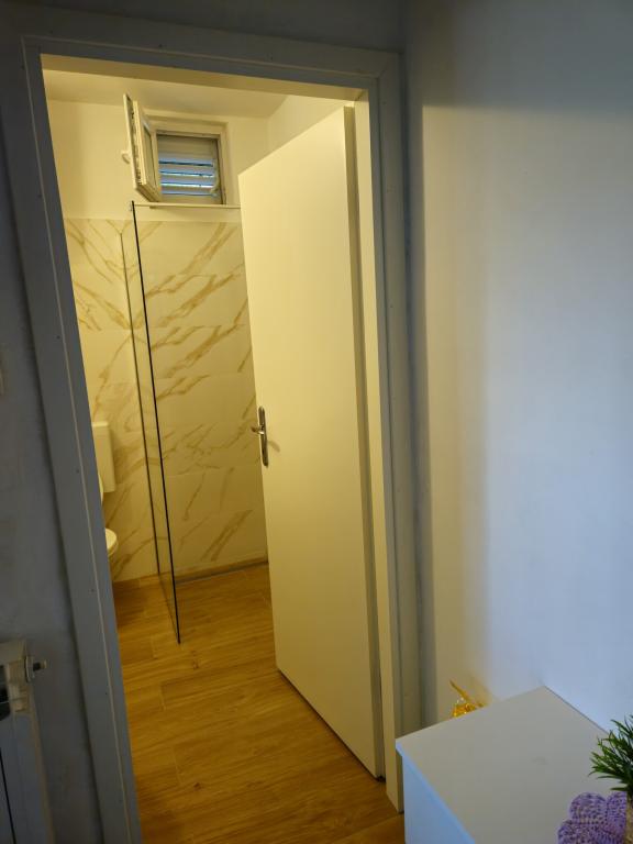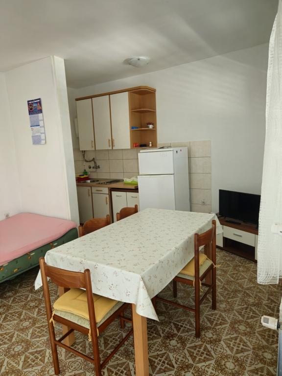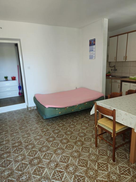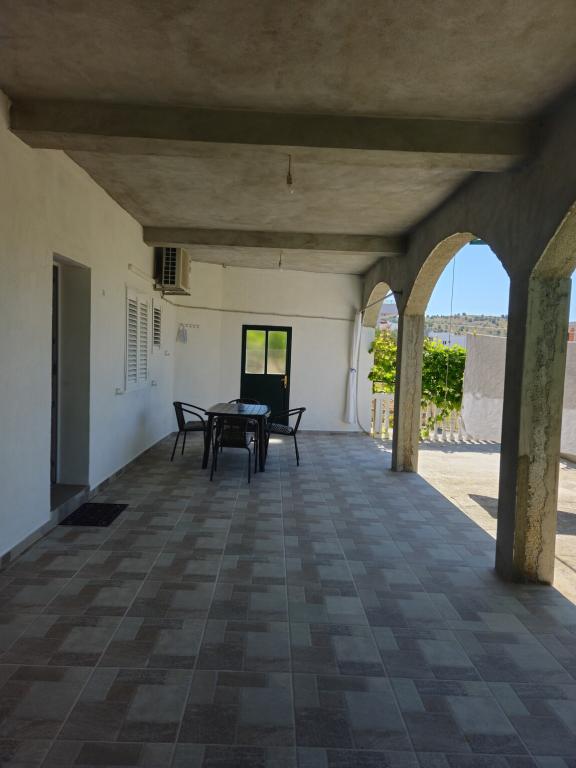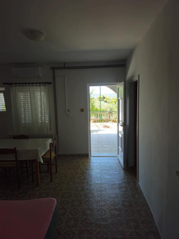 Apartman s velikom terasom. Ugodan ambijent u mirnom okruženju. Blizina centra i plaže je 5 minuta hoda.