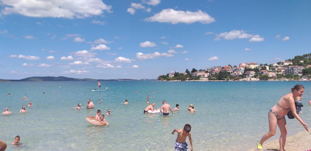 Kompletno i suvremeno opremljen apartman u mirnom predjelu Žaborića. Smješten je drugi red do mora sa pogledom na more i zalazak sunca. Objekt se nalazi 70m do mora i plaže te restorana sa širokom ponudom, šetnice uz more. Tri caffe bara na samom moru. Plaža idealna za djecu, bez ikakvog prometa u blizini plaže. Parking je osiguran, taxe su u cijeni, klima i wifi.