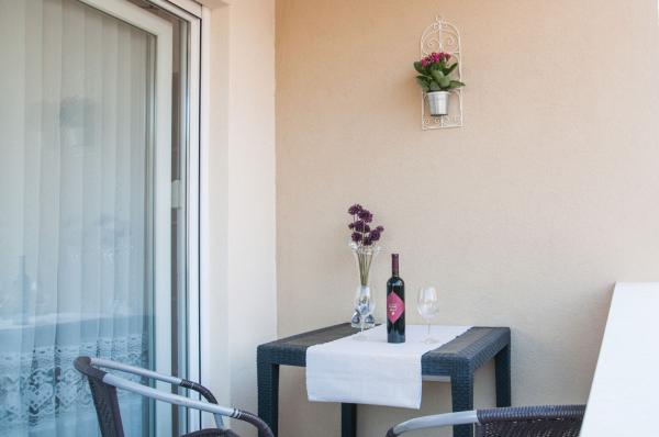 Apartman je prilično velik i lijepo uređen. Idealan je za obitelji s djecom i za mlade bračne parove. Oko apartmana ima velika sjenica gdje se može roštiljati ili samo sjediti i uživati. Plaža je ljepo uređena sa dosta hladovine. Svakako preporučamo jutarnju kavicu u kafiću na plaži u kojem se može sjediti u kupaćem kostimu odmah nakon što se iziđe iz mora. Također preporučamo romantičnu noćnu šetnju plažom i večeru u obližnjem restoranu, a po danu kupanje i izležavanje na plaži, najam i vožnju pedalinama te posjet aqua parku u obližnjem Solarisu.
