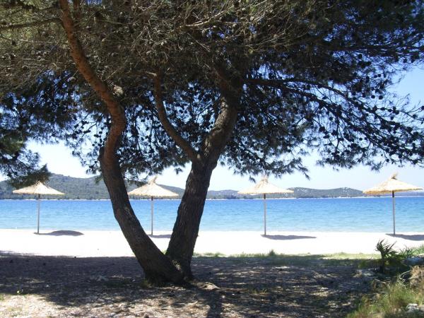 Vrlo mirna, nenaseljena, lijepa plaža unutar uvale, do koje se može doći električnim kolicima. Lokacija tik uz plažu, vrlo veliki stan u prizemlju - vrlo težak električni put kroz terasu - samo jedan korak i prag - imali smo vlastiti prilaz - tako da je za nas bilo u redu; zbog vrlo neobičnih potreba - osoba s invaliditetom s nama koristila je ogroman tuš u susjednom kampu na putu od plaže. Stan u stilu 90-ih - možda i nije najnovija moda, ali dobro održavan i vrlo čist, klimatiziran je i puna oprema. I što je najvažnije - JOŠKO - zlatni čovjek - nevjerojatno ljubazan i uslužan, s kojim se možete lijepo popričati, popiti ono što tko voli igrati biljar i stolni tenis. JOŠKO - HVALA !!! LIJEPI POZDRAV !!! VIDIMO SE USKORO !!!