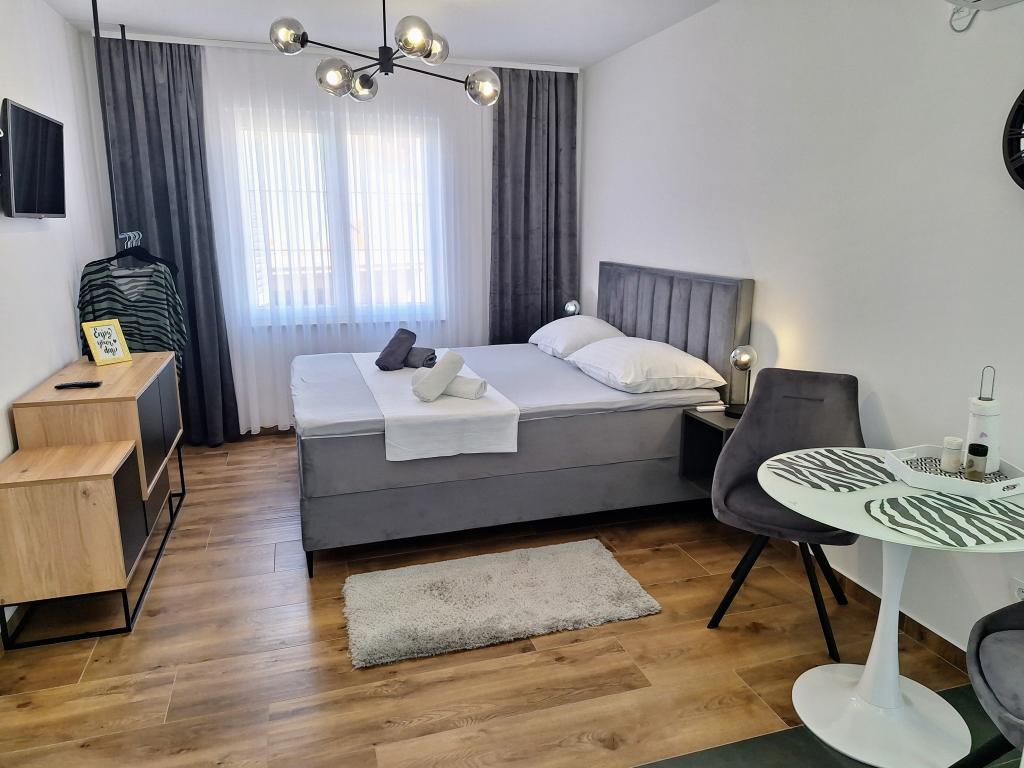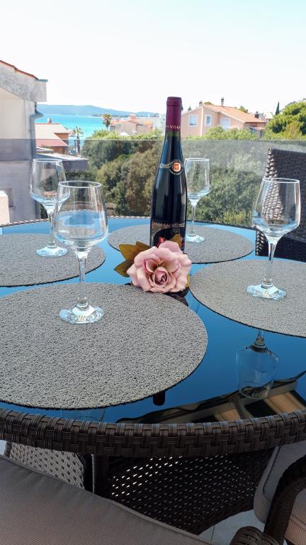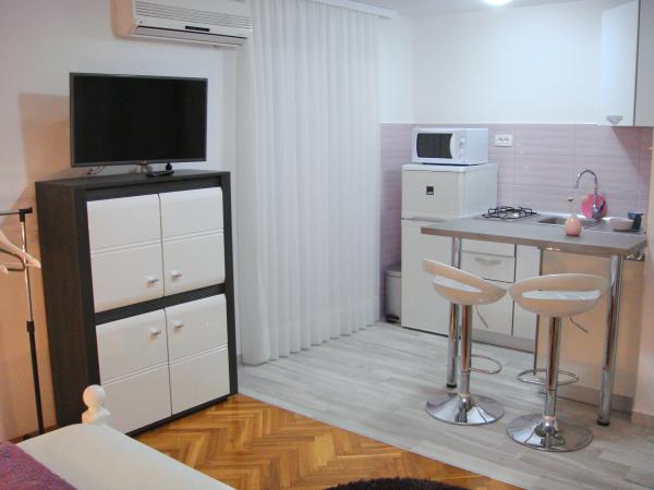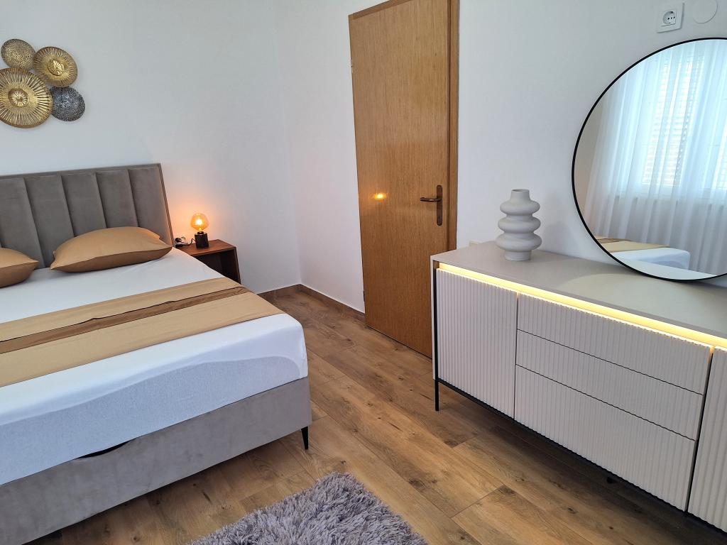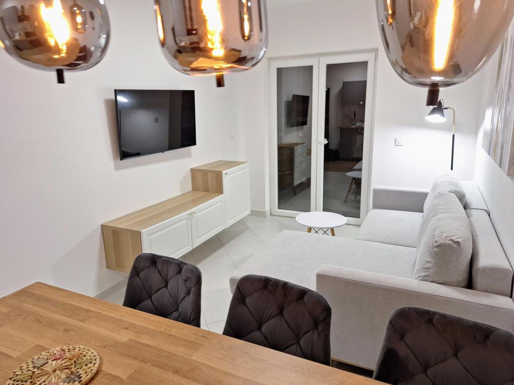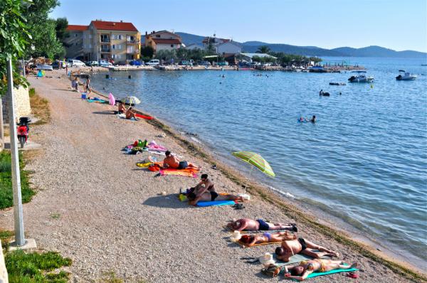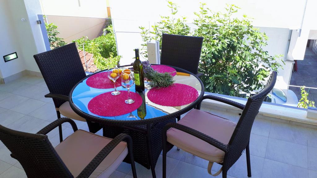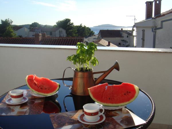Kompletno opremljeni apartmani smješteni u mirnom mjestu Žaborić, 50m udaljeni od mora i plaže. Objekt sve ukupno ima pet apartmana smještenih na prvom i drugom katu kuće. U sklopu kuće nalazi se parking, grill, vanjski tuš s toplom vodom i garderobom te velika zajednička terasa u dvorištu. Svi apartmani su klimatizirani, imaju TV/SAT, a kuća ima besplatni WiFi. Naši apartmani, kao i mjesto Žaborić idealni su za mirno obiteljsko ljetovanje, daleko od buke i gradske vreve.