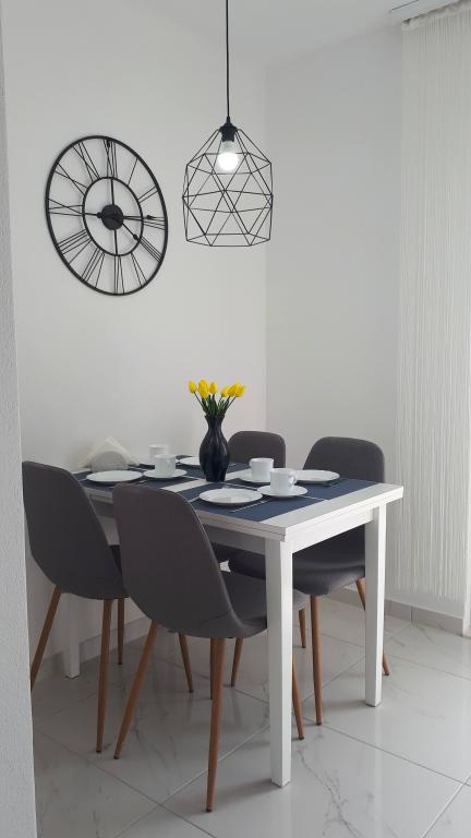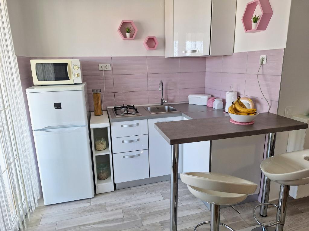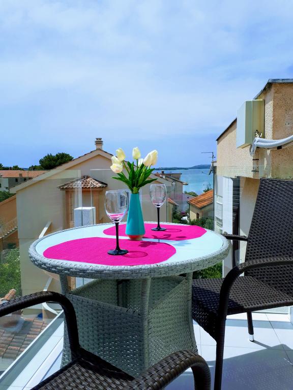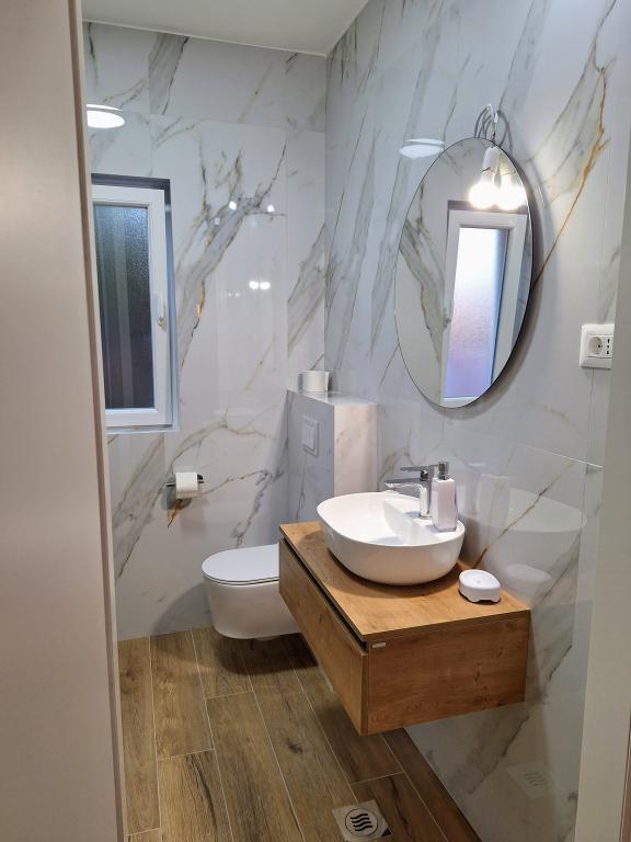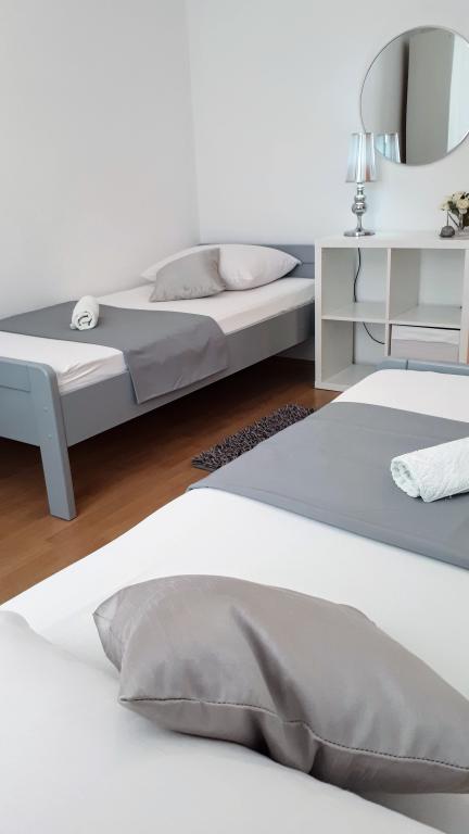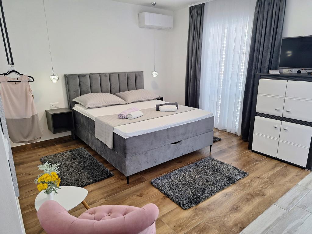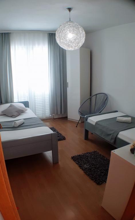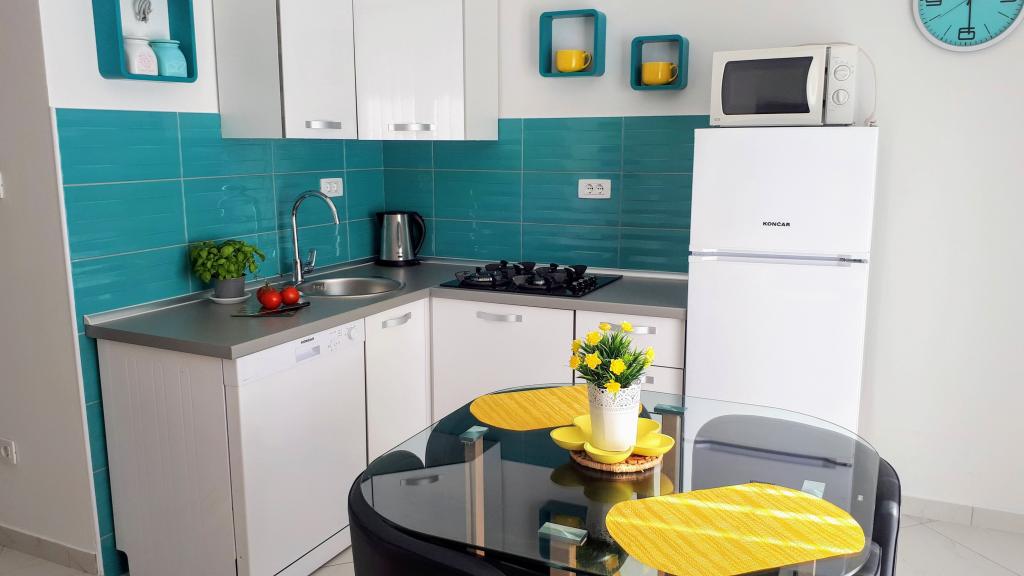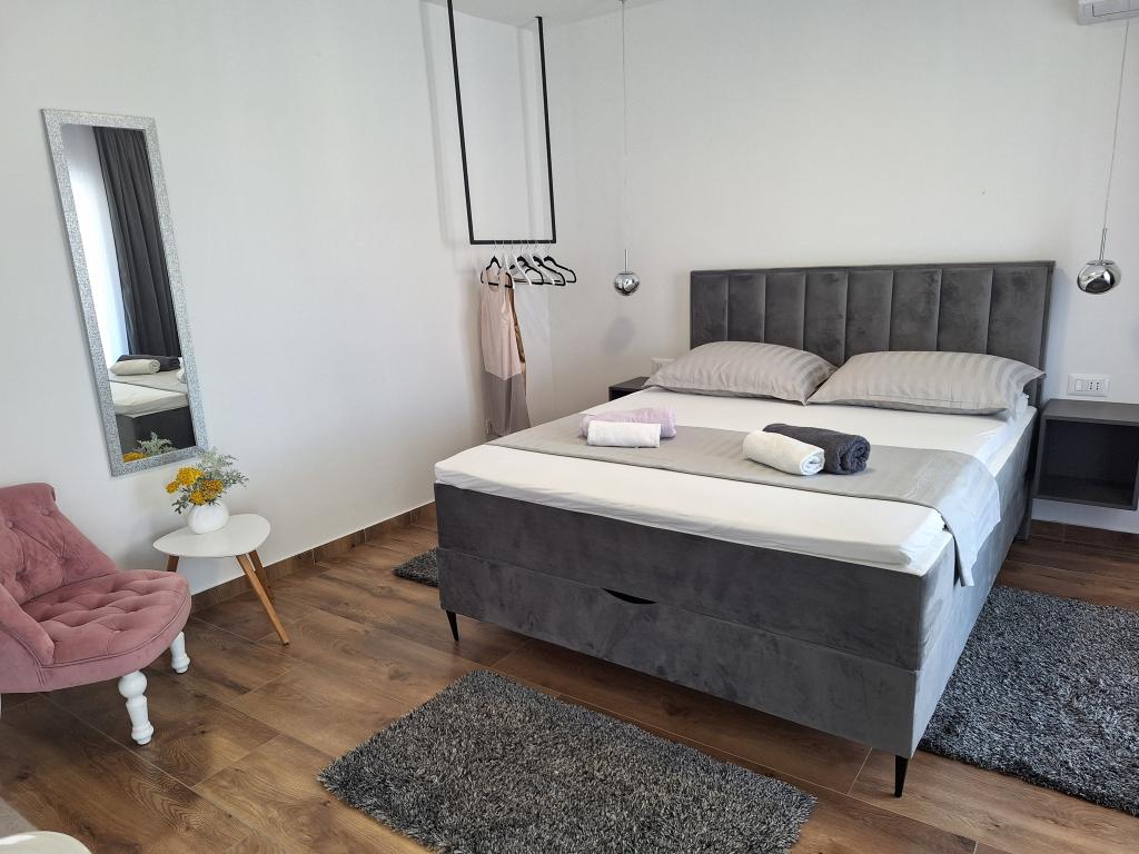 Kompletno opremljeni apartmani smješteni u mirnom mjestu Žaborić, 50m udaljeni od mora i plaže. Objekt sve ukupno ima pet apartmana smještenih na prvom i drugom katu kuće. U sklopu kuće nalazi se parking, grill, vanjski tuš s toplom vodom i garderobom te velika zajednička terasa u dvorištu. Svi apartmani su klimatizirani, imaju TV/SAT, a kuća ima besplatni WiFi. Naši apartmani, kao i mjesto Žaborić idealni su za mirno obiteljsko ljetovanje, daleko od buke i gradske vreve.