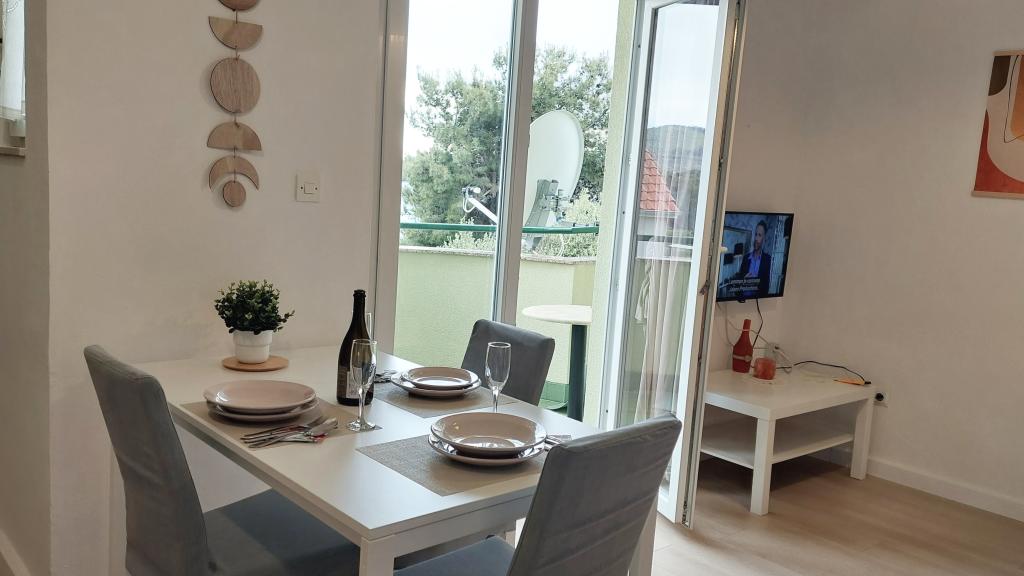 Apartmani Marta nalaze se u naselju Žaborić, u mirnoj uvali Jasenovo, na svega nekoliko koraka od mora. Da se dođe do plaže ne treba se prelaziti magistrala! Svaki apartman ima terasu ili balkon s pogledom na more. Apartmani imaju modernu kuhinju, mikrovalnu pećnicu te kuhalo za vodu. Opremljeni su sa novim klima uređajima, televizijama i satelitskim programima. Cijeli objekt ima odličan wi fi signal. Apartmani imaju zajednički vrt s mogućnošću korištenja roštilja. U sklopu objekta dostupno je besplatno privatno parkiralište. U uvali se nalazi restoran Veranda, kafić za trampolinom te kamp Jasenovo sa prekrasnom šljunčanom plažom na kojoj se nalizi još jedan kafić i palačinkarnica. U blizini apartmana je i pekarna, a marketi Studenac i Djelo nalaze se 1, 5 km od kuće. Shopping centar Dalmare, Lidl i Kaufland udaljeni su 6 km, a povijesni grad Šibenik 14 km. Blizu se nalaze i NP Krka i NP Kornati.