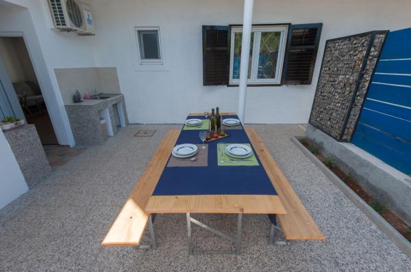 Apartman je primjeren za obiteljski odmor, nalazi se u mirnom dijelu Zadra okružen prirodom. U apartmanu se nalazi odvojena soba sa bračnim krevetom te u dnevnom boravku se nalazi kauč na razvlačenje. Prema potrebi mogućnost pomoćnog ležaja u sobi. Smješten je u obiteljskoj kući, sa odvojenim ulazom. Nalazi se u prizemlju, ima privatan parking, natkriven prirodnim hladom. Zajedničko korištenje natkrivenog komina ( roštilja) s domaćinima. Besplatan wi-fi.