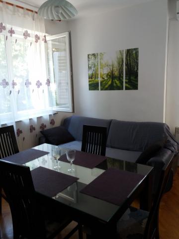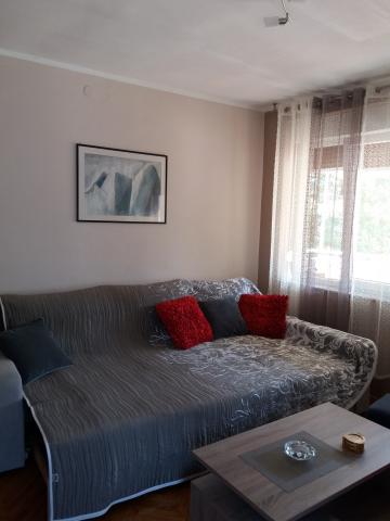 Kompletno opremljen apartman u mirnom dijelu grada udaljen od centra 10 minuta hoda te 15 minuta hoda do plaže. Nedaleko od objekta nalaze se trgovine , pošta, banke i ljekarna. Apartman ima dva velika balkona.