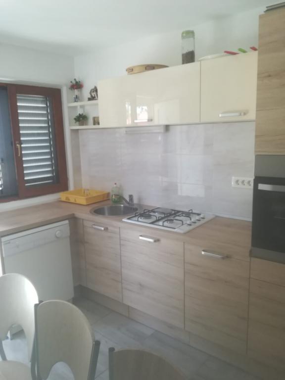 Kuća sa dva apartmana u mirnom dijelu Zadra, 700m od plaže, elitno naselje Diklo koje je poznato po svojim mirnim uvalama i vilama za odmor. Apartman u prizemlju kuce opremljen je sa dnevnim boravkom i kuhinjom, spavačom sobom, kupaonicom i terasom. Centar Zadra 10min autom. Supermarket, cafe bar, plaža 700m od kuće. Vanjska tenda i zidani roštilj na raspolaganju. Parking dostatan za 5 vozila. Kuća je također izvučena od prometnice, te nema ceste ispred i iza sebe, tako da su djeca i kućni ljubimci potpuno bezbrižni i sigurni. Djeca do 12 godina plaćaju 50 % cijene noćenja