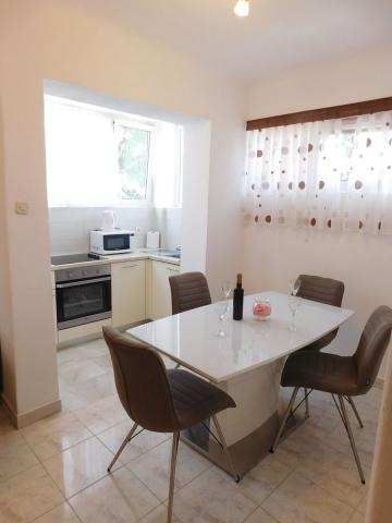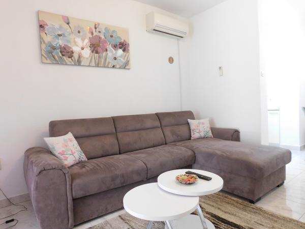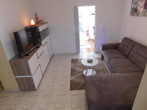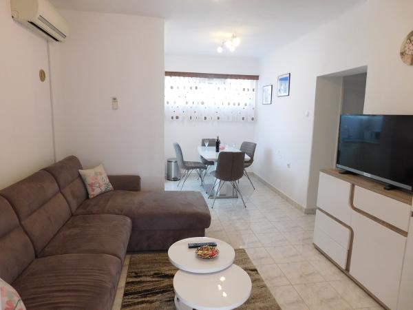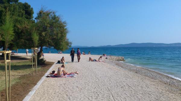 Apartman se nalazi na mirnom mjestu bez buke, a od centra grada udaljeno šetnjom samo 15 minuta ili 1 km. Od poznatog pozdrava suncu i morskih orgulja udaljeno je šetnjom 15 minuta ili 1, 2 km. Iznajmljuje se u periodu od 01. 05. -01. 10. - Sa balkona ima skriveni pogled na more - Odmah ispod apartmana uz samu plažu ima velika šetnica na kojoj možete udahnuti svaki dan svježi morski zrak - 300 m od apartmana bazen otvorenog tipa Apartman se nalazi u maloj stambenoj zgradi sa još tri stana. Smješten je na prvom katu. Kapacitet apartmana je 4 1. Apartman ima dvije sobe sa velikim bračnim krevetima i kauč na razvlačenje. Sobe su opremljene svom potrebnom posteljinom. Ima potpuno opremljenu kuhinju sa mikrovalnom, aparatom za kavu i kuhalom za vodu, perilicom posuđa...Vlastita kupaonica sadrži tuš, sušilo za kosu i besplatne toaletne potrepštine, perilicu rublja