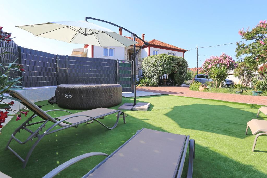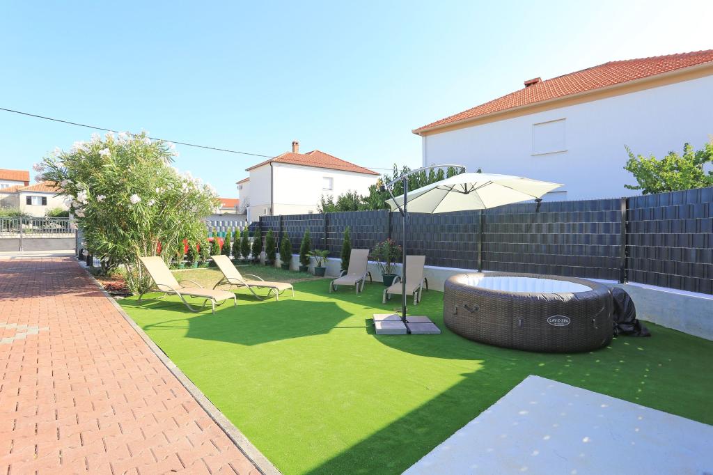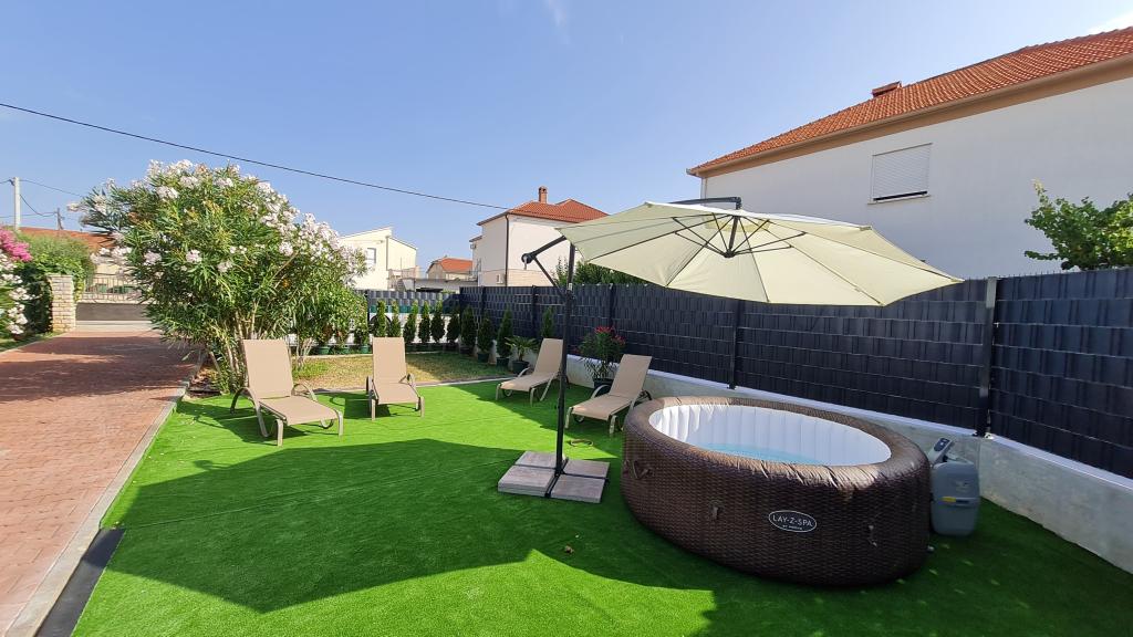 Apartman Green oasis Zadar nalazi se u mirnom kvartu , na prvom katu obiteljske kuće koja ima svoj vlastiti park od 400 m2. Apartman je površine 140 m2. U sklopu apartmana također su dostupni : jacuzzi u parku sa ležaljkama , stol za stolni tenis, te besplatan privatni parking. Apartman je u potpunosti klimatiziran, te ima besplatan WIFI. Prostor apartmana je organiziran u 3 spavaće sobe i dnevnim boravkom.U dvije sobe se nalaze bračni kreveti sa mogućnošću dodatnog ležaja, te jedna jednokrevetna soba. U dnevnom boravku se nalazi kauč koji je istovremeno i konforan ležaj za dvije osobe. Apartman raspolaže sa dvije potpuno opremljene kupaonice, opremljenu kuhinju sa hladnjakom i ledenicom, te veliki degažman sa radnim stolom. U sklopu ovog konfornog apartmana nalazi se i terasa od 25 m2, sa velikim stolom i roštiljem.