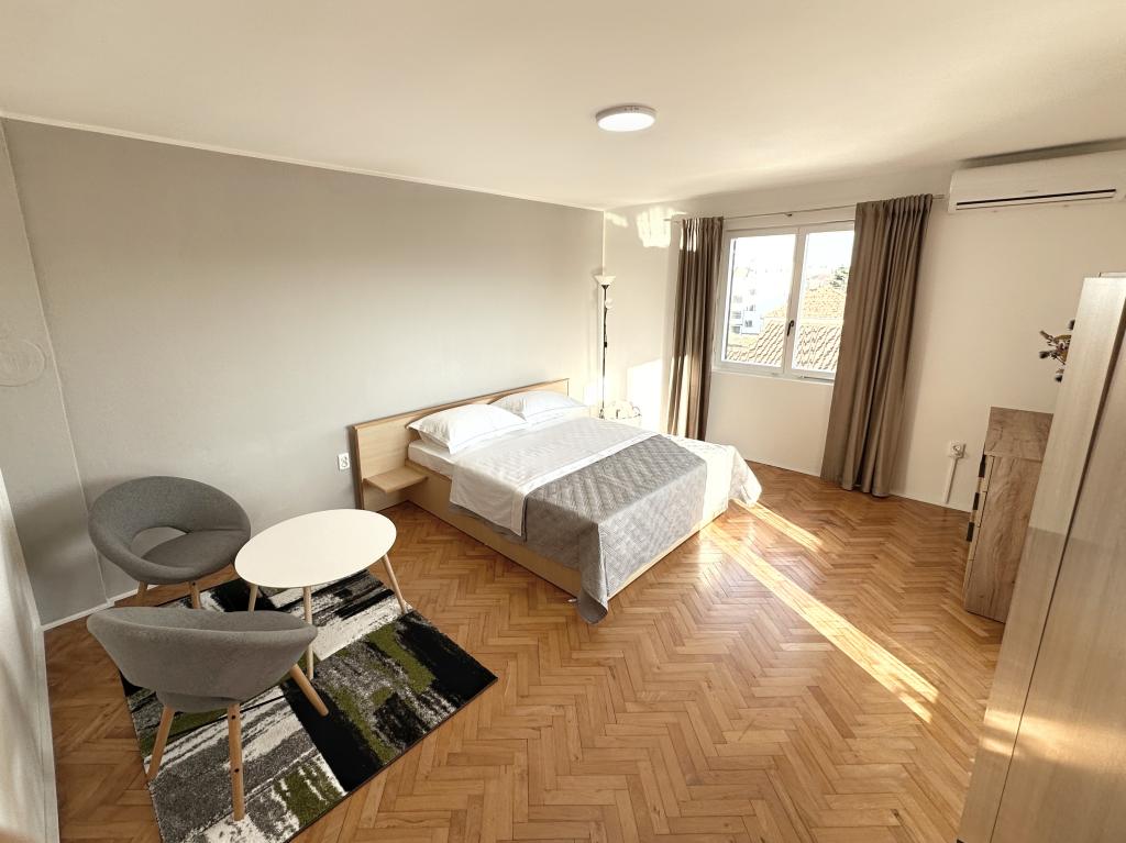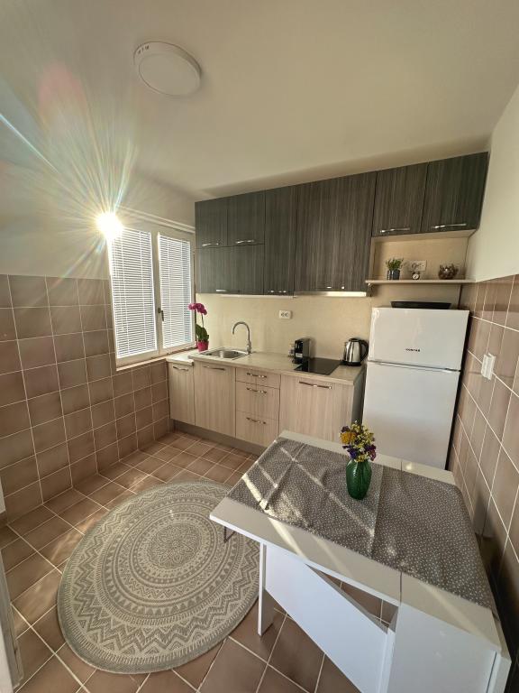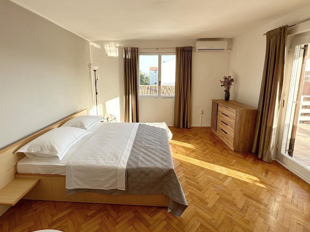 Dobro došli u obiteljsku kuću u kompletno opremljen apartman , smješten na trećem katu kuće. Apartman je smješten na Belafuži u mirnom dijelu grada udaljen 2,2 km od centra grada i plaže i 13km od zračne luke. Površina apartmana je 80m2 u kojem se nalaze kupatilo, tri spavaće sobe, kuhinja i prostrana terasa. Apartman je kompletno opremljen sa svim potrebnim za boravak ( 2 klima uređaja, perilica rublja, mikrovalna, kuhalo za vodu, nesspreso kafe aparat, 2 smart Tv i besplatan Wi-Fi internet. Gosti koji se odluče za naš aprtman imaju osiguran veliki privatan parking. Apartman je idealan za 6 osoba.