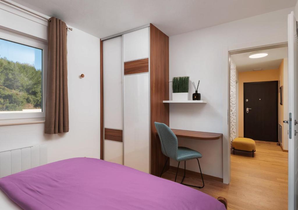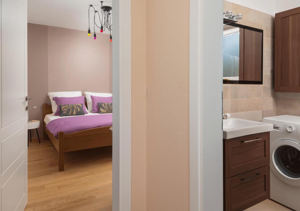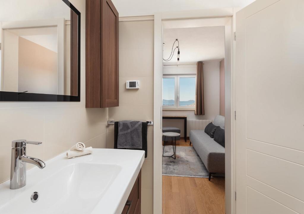 - 2 spavaće sobe - 2 kupaonice - dnevni boravak - potpuno opremljena kuhinja - hladnjak - aparat za kavu - Klima - Terasa - pogled na more - Perilica rublja - Kauč na razvlačenje - zvučna izolacija - Internet - TV - Satelit