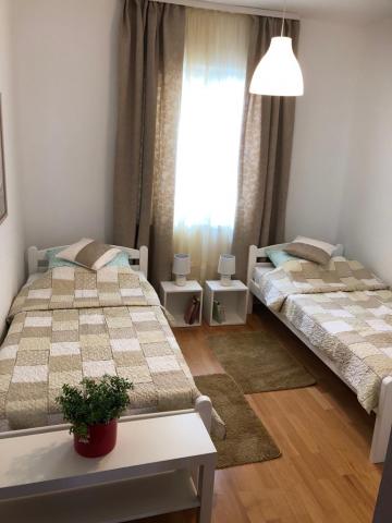 Iznajmljujem trosobni apartman, 60 kvadrata s velikom terasom od 30 kvadrata na cijelom prvom katu kuće. Nalazi se u Boriku, mirnom dijelu Zadra. Centar grada udaljen je 20-ak minuta lagane šetnje uz more. Smještaj omogućava gostu mirno ljetovanje sa svim iskoristivim ljepotama grada Zadra. Apartman se sastoji od kuhinje s blagovaonicom, dnevnog boravka, dvije spavaće sobe, dvije kupaonice (jedne veće i jedne manje). Predviđen je za komotan smještaj 4 osobe. U apartmanu su klima uređaj, internet (wi-fi), veliki TV, perilica rublja, sušilo za kosu, ručnici, posteljina, štednjak s pećnicom, posuđe. , roštilj. . Osigurano parkirno mjesto u dvorištu. U neposrednoj blizini nalaze se trgovina, restorani, kafići, trgovački centar. Nije pogodan za boravak kućnih ljubimaca. Najbliže plaže su Uskok, Borik i Puntamika. Laganom šetnjom do plaže ima 10 min. Prednost ljetovanja u apartmanu je mirna okolina obiteljskih kuća te mogućnost brzog obilaska svega što grad Zadar i okolica pružaju.