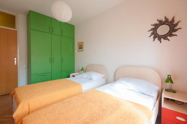 Iznajmljuje se komforan apartman na prvom katu obiteljske kuće na Boriku, zapadnom dijelu grada Zadra. Apartman se nalazi u neposrednoj blizini pješčane plaže Borik i gradske plaže Uskok (preporučamo odlazak na plažu pješke). Borička plaža je smještena u kompleksu s ugostiteljskim objektima bez prometa, a ukoliko volite udaljenije plaže s manje ljetne vreve, za 500 m ste na glavnoj prometnici, nadomak Nina, Petrčana, Vira, Privlake, Sabunika, Punta Skale...Udaljenost od apartmana do centra grada je oko 4 km: do centra grada vodi šetnica uz more, a moguće je koristiti i javni prijevoz (gradski autobus). Apartman Marin se sastoji od dvije spavaće sobe (u jednoj se nalazi bračni krevet, dok su u drugoj dva kreveta za jednu osobu), prostrane kuhinje s dovoljno radnog prostora i svjetla, ugodne blagovaone i dnevnog boravka, u kojem se nalazi trosjed koji se lako pretvori u ležaj dimenzija 160x200 cm. Iz dnevnog boravka se izlazi na terasu sa sjedećom garniturom a jedna od spavaćih soba ima svoj balkon, pogodan za sušenje rublja. Zbog svoje kvadrature apartman omogućuje ugodan boravak za više osoba (apartman je idealan za obitelj s djecom ili za dva para). Apartman je klimatiziran i ima bežični brzi internet.