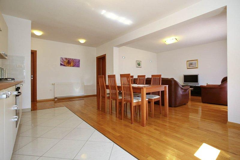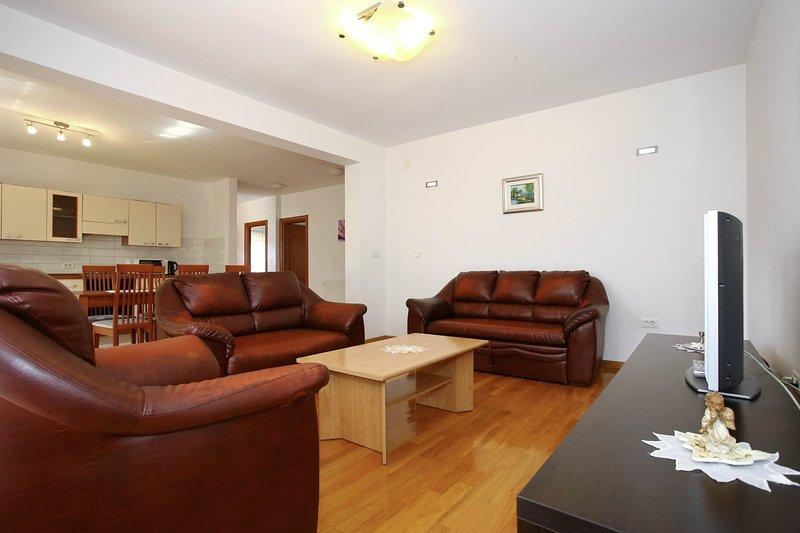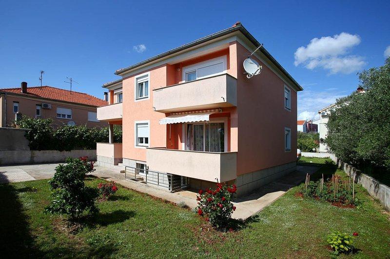 Kuća se nalazi u turističkom djelu grada Zadra, Borik, u kojem su smješteni hoteli grupe FALKENSTAINER, koji imaju pješčanu plažu i vodeni park i dostupan je uz plaćanje. U ulici se nalaze svi bitni objekti od supermarketa, restorana, i zabavni park za djecu. Sama kuća i dvorište je veliko ima prostora za dječiju igru, vanjski grill je u funkciji sa velikim drvenim stolom i klupama za opuštanje sa specijalitetima od grilla do kasno u noć. Apartman je velik i komforan blizu smo plaže( 3) OKO 500 m. Apartman se sastoji od tri spavaće sobe sa po dva kreveta, veliki dnevni boravak sa kuhinjom, kupatilo, mali toalet, i veliki balkon za ispijanje jutarnje kave, imamo i diječiji krevetić za parove sa malim djetetom Možemo primiti od 6-8 osoba