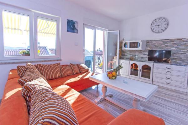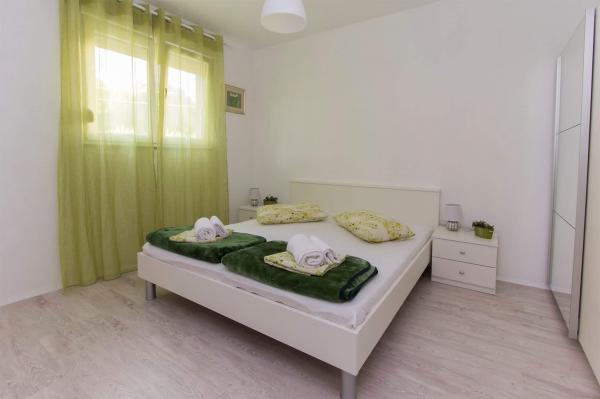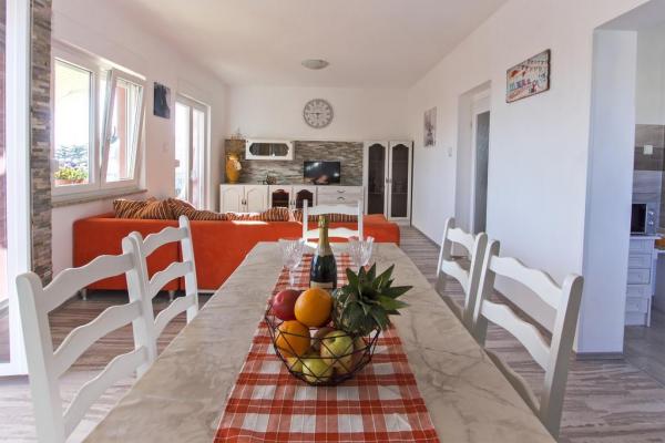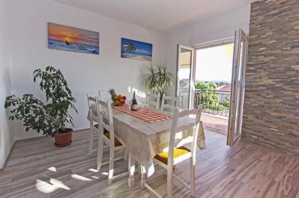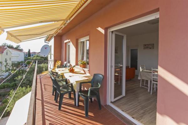 Potpuno opremljen apartman, renoviran ove godine s terasom i pogledom na more. Apartman se nalazi u Diklu, turističkom dijelu grada, manje od 5 minuta hoda od plaže, u mirnoj ulici, par minuta pješke udaljeno od klubova. Na plaži se nalaze zabavni sadržaji (morske aktivnosti) U blizini se nalazi trgovina (600 metara), ljekarna, banka, benzinska pumpa, restorani. Autobusna stanica udaljena manje od 5 minute hoda od kuće. Veliki apartman na 2. katu ima 3 sobe, kupaonu i wc, kuhinju i prostrani dnevni boravak s izlazom na balkon i pogledom na more. Manji aparman se nalazi u prizemlju, pogodan za 2 2 osobe, ima kuhinju, kupaonu i sobu. Sadrži klimu, televiziju, internet. U dvorištu se nalazi roštilj i stol za goste
