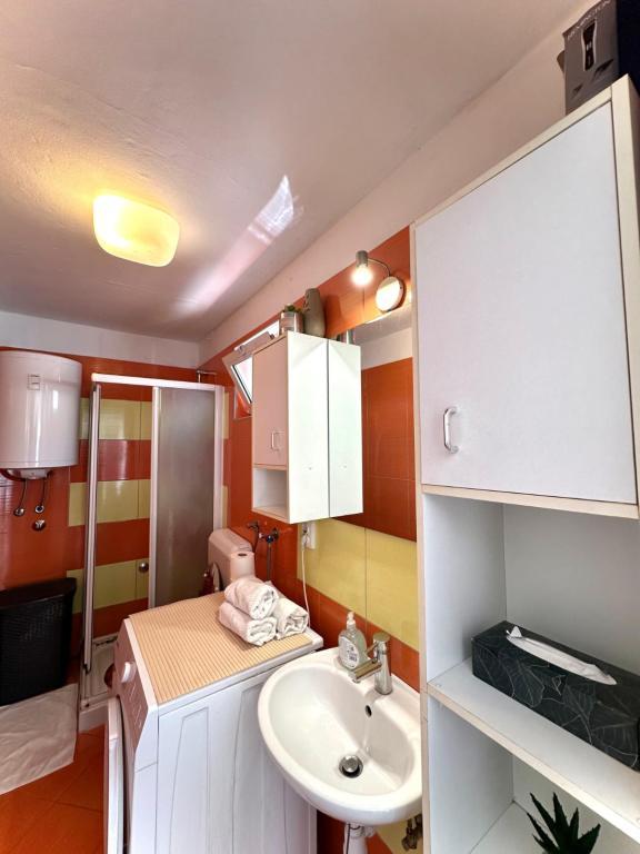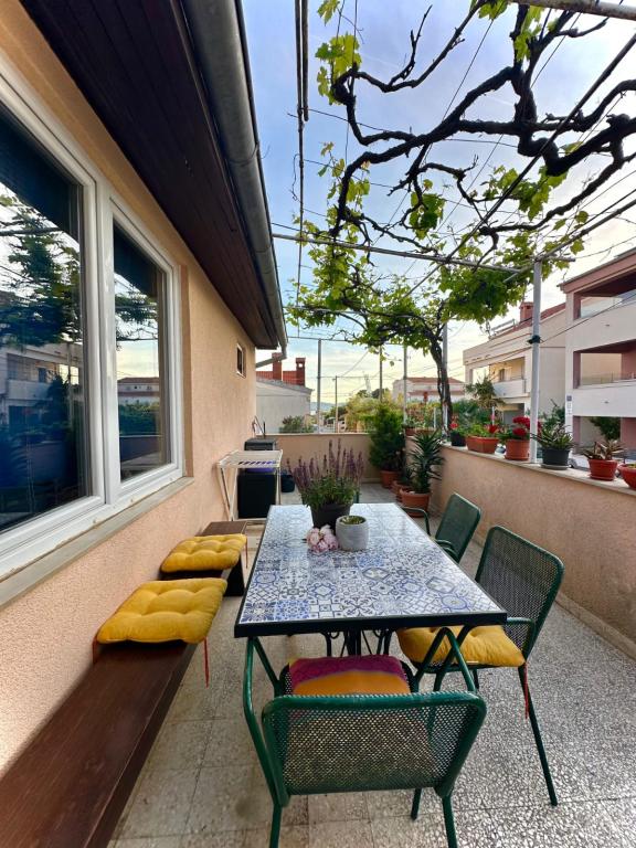 Kompletno namješten apartman- perilica posuđa, perilica rublja, klima, wifi, tv, privatni parking, velika terasa, izuzetno miran kvart, do plaze je 50 m
