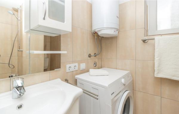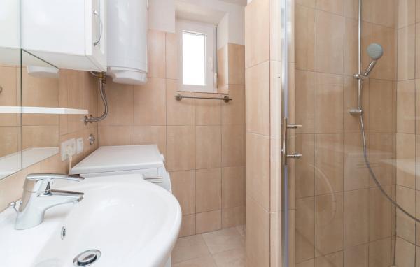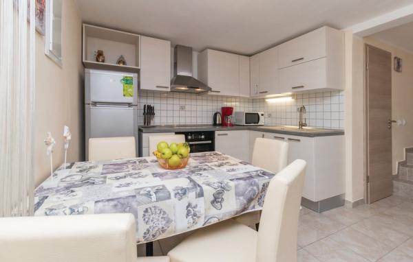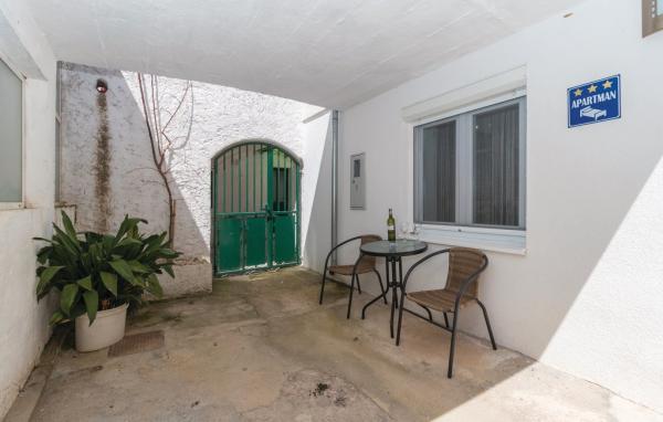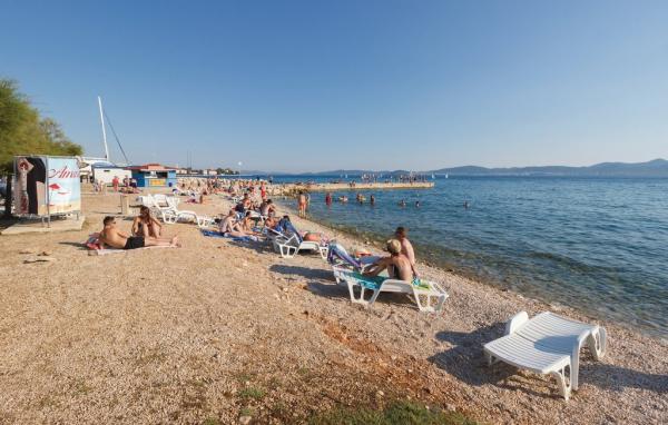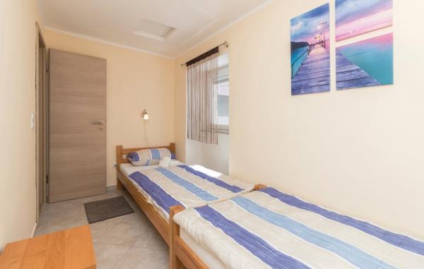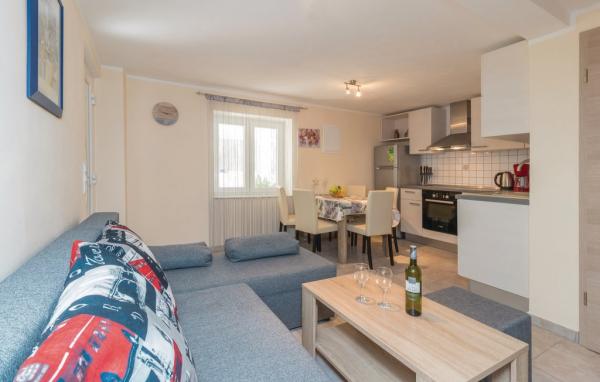 Moderno uređen etažni apartman se nalazi 100 m. od šljunčane plaže. Pješčana plaža (za koju se plaća ulaz) je udaljena 300 m. U prizemlju apartmana je kuhinja, dnevni boravak i kupaonica sa wc - om. Kat je povezan sa unutarnjim ograđenim stepenicama gdje se nalaze dvije moderno uređene sobe. Jedna soba ima krevet za dvije osobe s mogućnošću postavljanja dječjeg putnog krevetića. Soba je također opremljena sefom u koji možete odložiti vrijedne predmete. U drugoj sobi su dva kreveta za po jednu osobu. U prizemlju je kauč na razvlačenje koji služi kao pomoćni ležaj. Parking je 100 od apartmana na javnoj površini i besplatan je. U cijenu smještaja je uključena posteljina, ručnici i pristojbe (voda, struja...)
