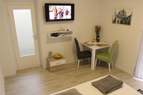 Novo uređen, miran i udoban apartman studio nalazi se u centru grada Zadra. Lokacija je veoma zgodna jer je vrlo blizu mosta koji vodi u stari dio grada(nekoliko min. pješice) gdje se nalaze sve kulturne i povijesne znamenitosti grada. Odmah blizu apartmana nalazi se sve ostalo što bi vam moglo biti korisno i potrebno prilikom vašeg boravka u našem gradu (pekarnica, pošta, banka, taxi, trgovine, kafići, renta-car i praonica rublja! Odmah preko puta ulice u kojoj je smješten apartman nalazi se marina te vam se pruža lijep pogled na brodove! Sve što trebate je da se opustite i uživate!!!