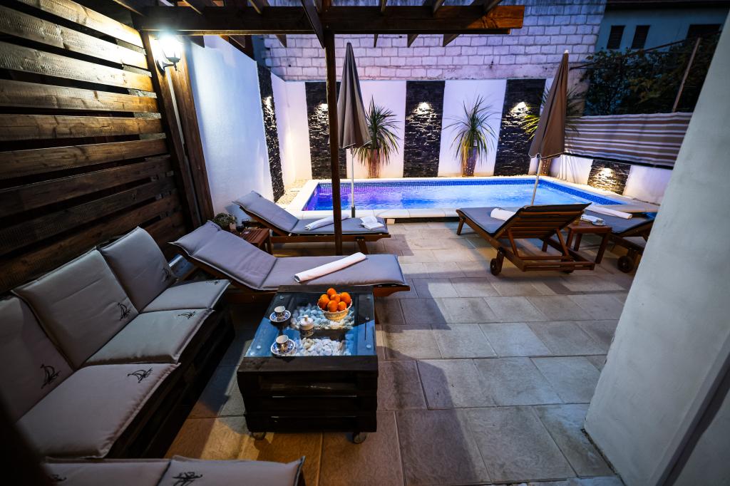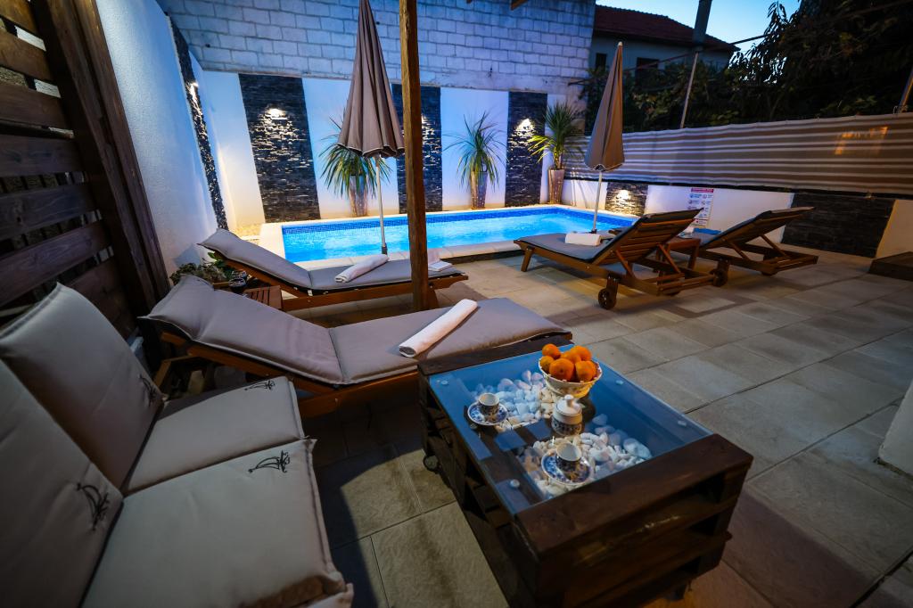 Dobrodošli u Apartman Rustica s privatnim bazenom! U prekrasnom okruženju, uz zvuk morskih orgulja i mirisa mora, doživite Zadarsko ljeto!!! Uživajte u razgledavanju grada, plažama i feštama, a nakon toga u mirnom okruženju našeg apartmana odmorite se za novo sutra! U udobnom smještaju u klimatiziranom komfornom apartmanu (70m2) sa dvije spavaće sobe, 2 kupaonice, radnom sobom, dnevnim boravkom, kuhinjom sa blagovaonicom i terasom, te sa posebnim ulazom i 1 parking mjestom, opustite se i uživajte ! Parking osiguran! Bazen samo za vas! Rustica se nalazi 15 tak minuta hoda od gradske jezgre Starog grada, kao i morske plaže te autobusnog kolodvora. Blizu nas su trgovina, pekarna i pizzeria, a par minuta dalje su svi veliki supermarketi (svemu blizu, a opet daleko!) U okružju Zadra ima čak 5 nacionalnih parkova: Paklenica, Kornati, Plitvička jezera, Slapovi Krke i Sjeverni Velebit. Zadarska regija je jedno od najzanimljivijih odredišta za svakog zaljubljenika u more i podmorje.